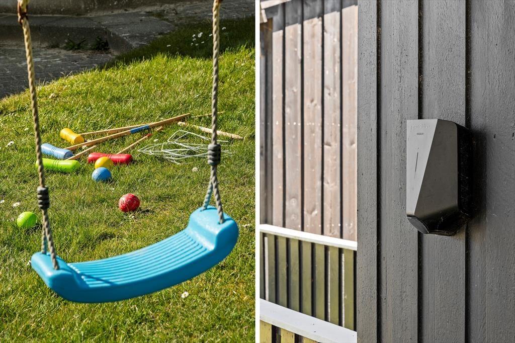 På den 1.287 m2 store grund er der gynger og sandkasse til de yngste børn, mens græsplænen kan anvendes til alt lige fra solbadning, havespil og til vandkamp. Foretrækker I at sidde i en magelig havestol med en god bog eller en kølig drink, kan det oplagt foregå på terrassen, der måler hele 60 m2 og smyger sig rundt om huset