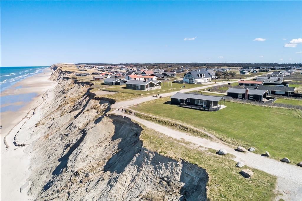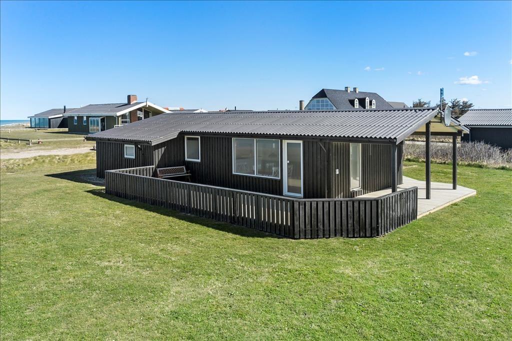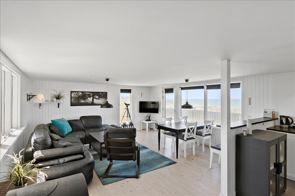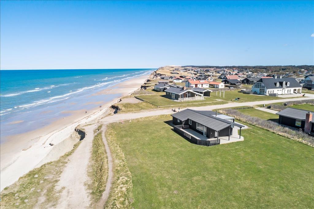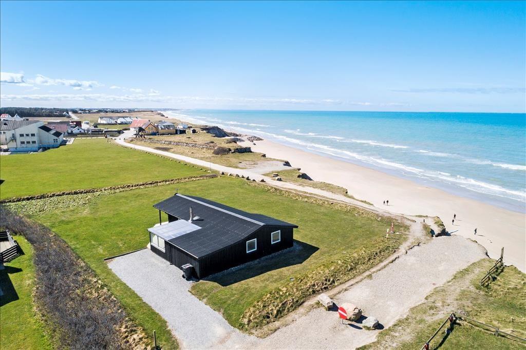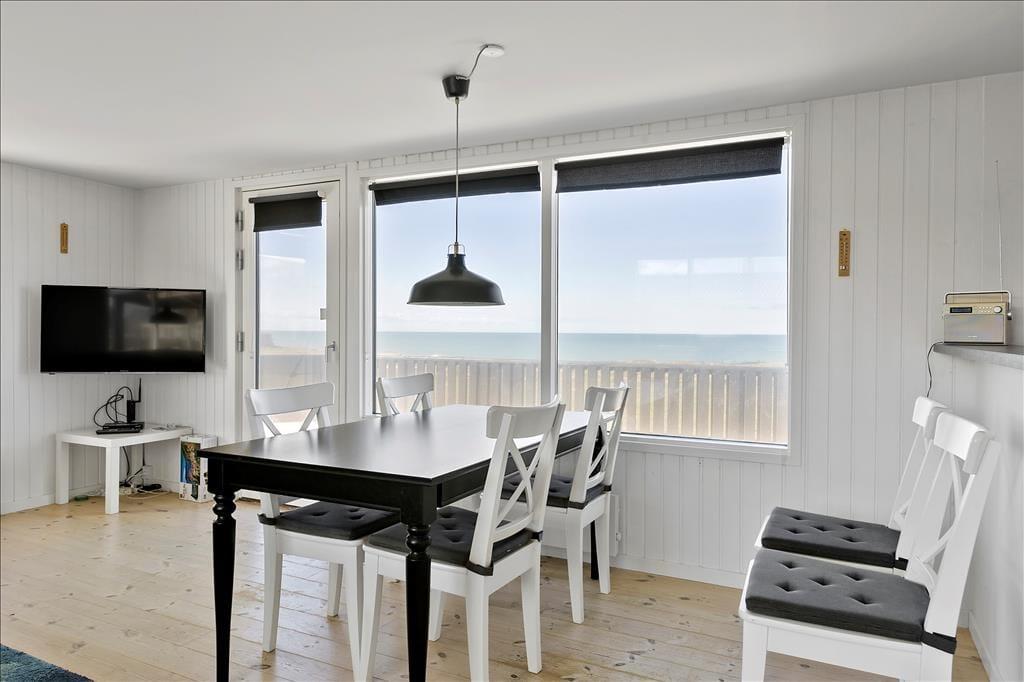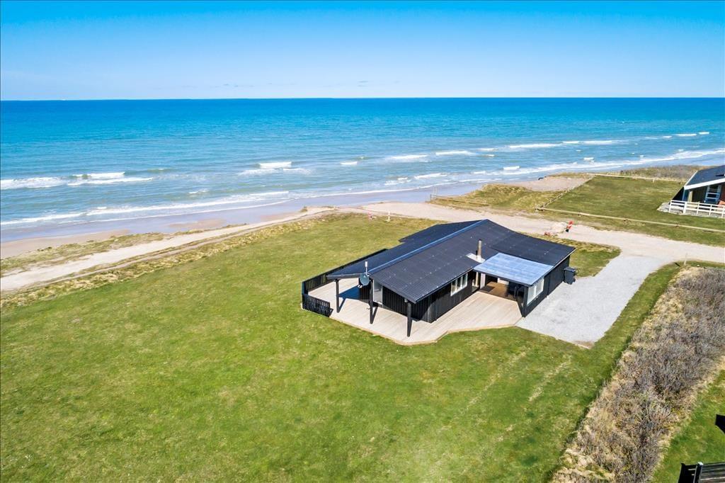 Hvis I drømmer om at holde ferie med flot natur lige udenfor vinduerne, er dette fine sommerhus helt klart en værdig kandidat. Det ligger nemlig i første række til Nr. Lyngby Strand, så fra både stuen og terrassen har I fri og uforstyrret udsigt til Vesterhavet.