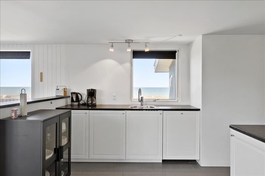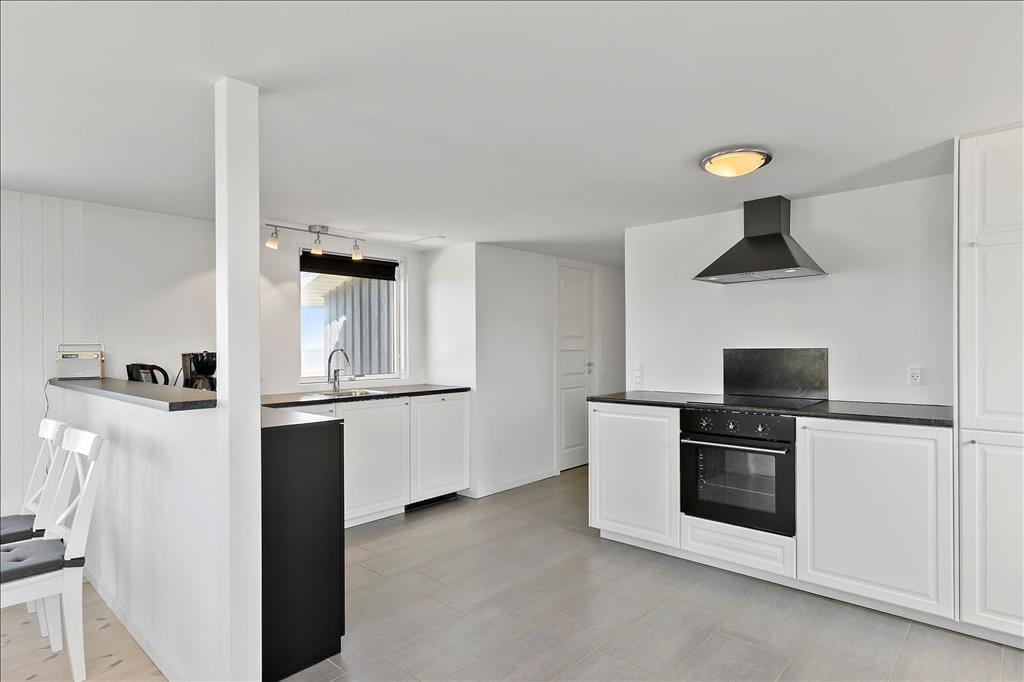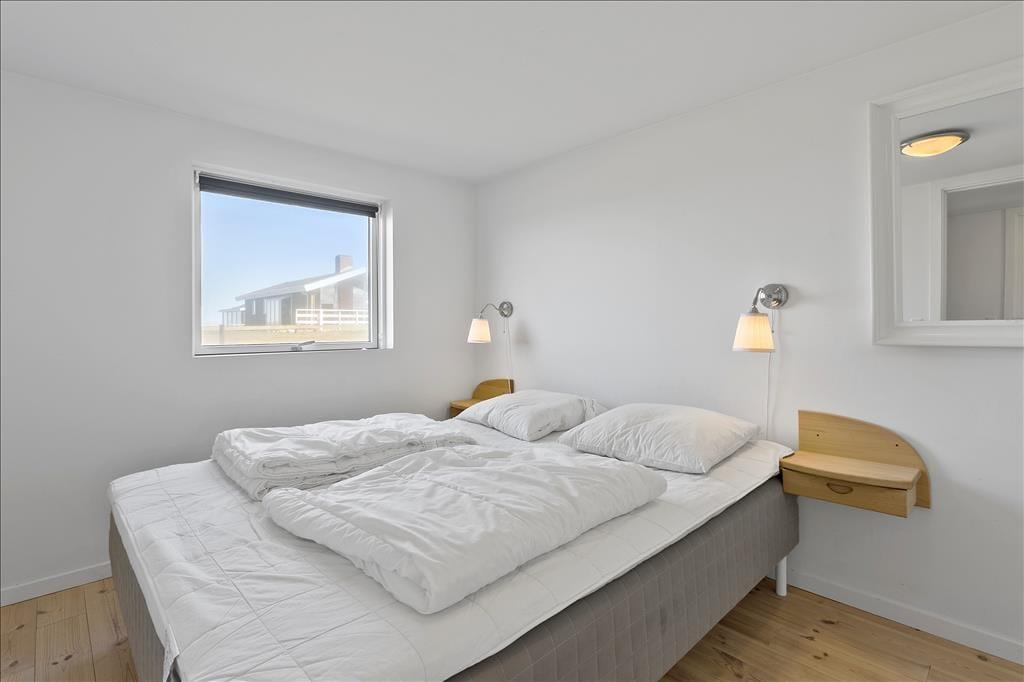Sommerhuset er et pænt og velholdt eksemplar, der er blevet renoveret i 2017 og indrettet med enkelt møblement i neddæmpede farvetoner. Inden døre er der 68 m2 at brede sig på for op til fire personer: I løbet af dagen kan I opholde jer i stuen, der ligger i åben forbindelse med et veludstyret køkken, og nattesøvnen kan foregå på de to soveværelser, der begge er udstyret med gode dobbeltsenge. På sommerhusets badeværelse er der gulvvarme, mens en brændeovn står klar til at sprede varme og hyggestemning i stuen. I stuen er der for øvrigt vinduer vendt mod tre verdenshjørner, så der er ikke bare fri havudsigt, men også et godt lysindfald hele dagen lang.