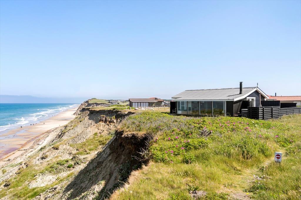 Hvis I er på udkig efter et sommerhus med en spektakulær beliggenhed, er der ingen grund til at lede mere. Dette sommerhus i Nr. Lyngby ligger lige ud til Lønstrup Klint, så fra stuen, terrassen og selv fra vildmarksbadet har I den mest fantastiske panoramaudsigt over Vesterhavet.