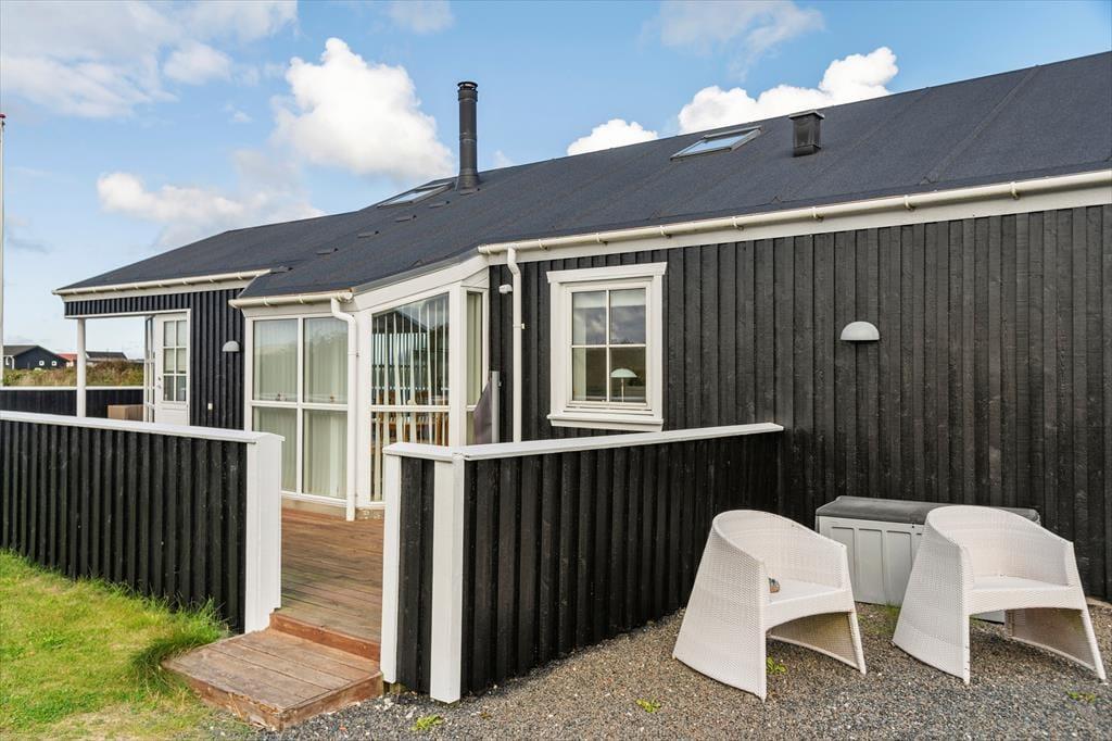 En stor træterrasse breder sig om tre af husets sider, så I kan lige tage bestik af vindretningen og solens placering på himlen, inden I slår jer ned i havestolene. Har I lyst til skygge, kan I tage parasollen i brug, og takket være grillen kan I forkæle jer selv hver aften med sommerlig mad tilberedt under åben himmel.
