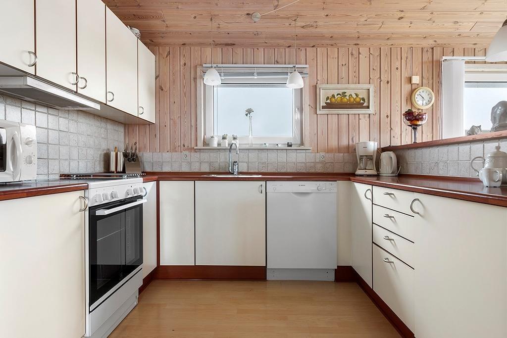 Træd ind i et lyst og indbydende hjem, hvor store vinduespartier lader naturligt lys fylde rummene. Sommerhuset har en dejlig åben planløsning, hvor stuen smelter sammen med det veludstyrede køkken. Her kan du tilberede dagens måltider og stadig være en del af samtalen og hyggen med familien. Brændeovnen er den perfekte detalje, når du vil skabe en varm og hyggelig stemning om aftenen. Huset rummer fire gode værelser, hvor alle har deres eget særpræg og plads til afslapning. Der er både et badeværelse og et gæstetoilet, hvilket gør det nemt at opretholde privatlivet, samtidig med at alle kan være sammen i de åbne opholdsrum.