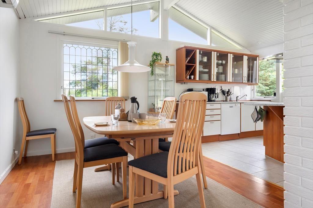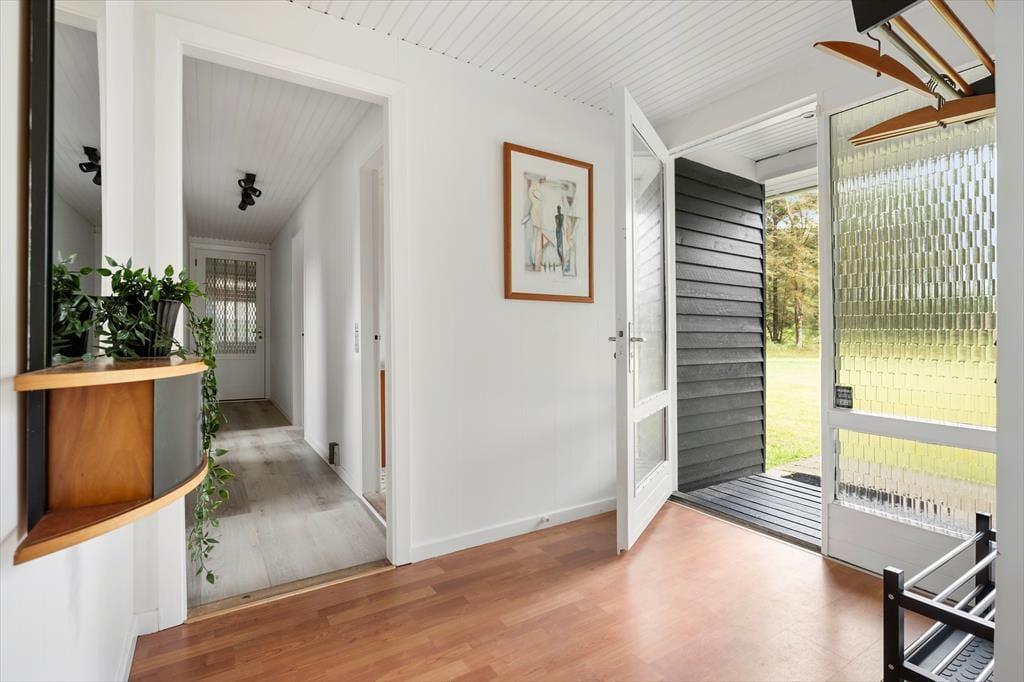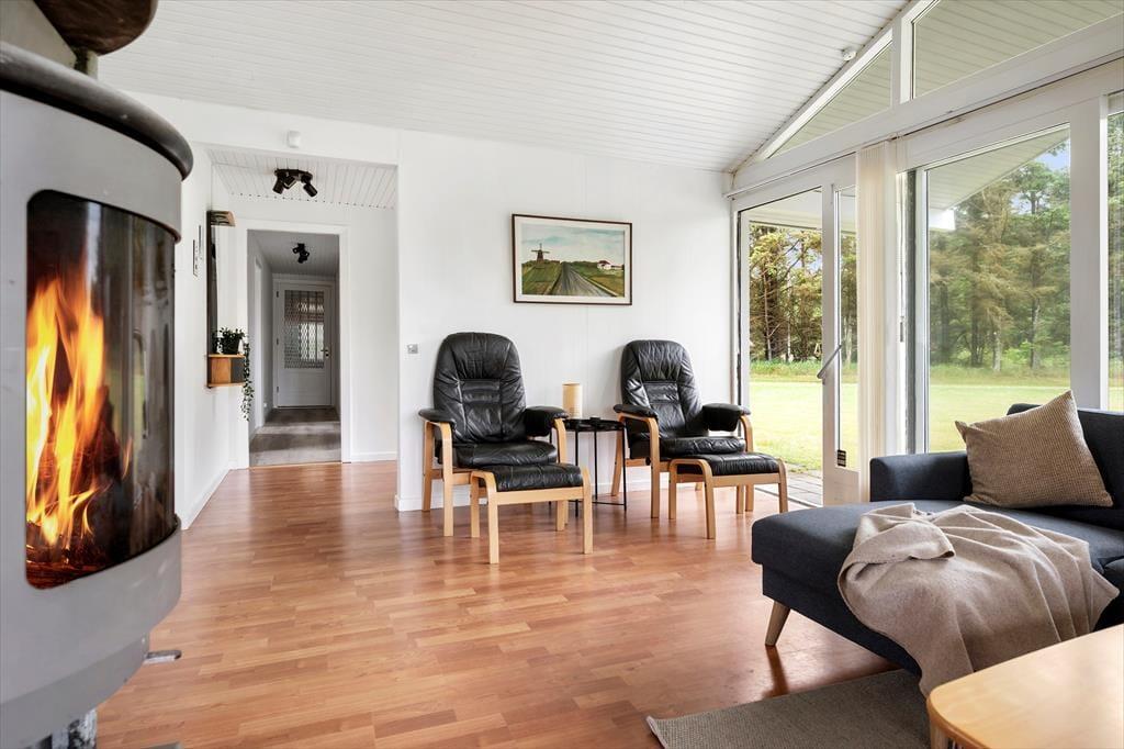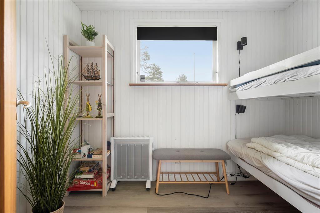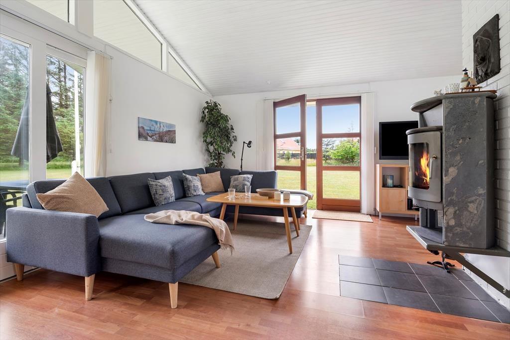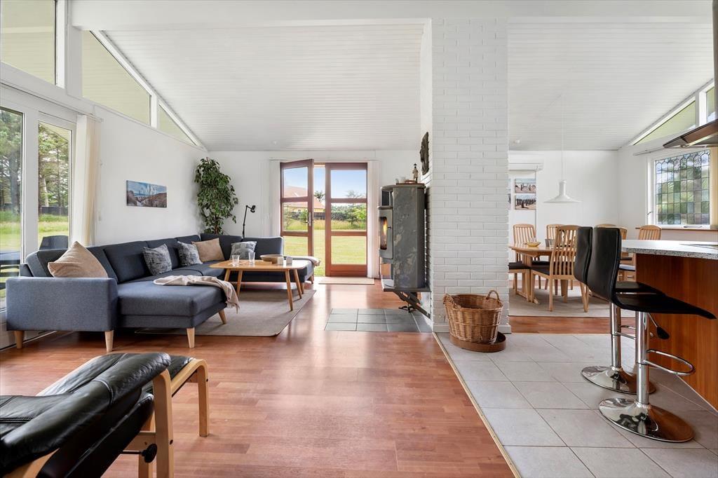 Sommerhuset er lyst og indbydende med en skøn, åben planløsning, hvor køkken og stue smelter sammen i ét hyggeligt opholdsrum. Her kan hele familien samles om madlavning, spil eller en god film, og den knitrende brændeovn sørger for ekstra varme og stemning, når aftenen falder på. De store vinduespartier inviterer naturen helt indenfor og giver et dejligt lysindfald i løbet af dagen. Huset rummer tre gode soveværelser og et badeværelse, og med sine venlige farver og simple charme emmer det af klassisk sommerhusstemning. Det er det ideelle sted at koble fra, finde fordybelse og nyde samvær uden forstyrrelser – uanset om det er over morgenkaffen, en brætspilsaften eller en stille stund med en bog i sofaen.