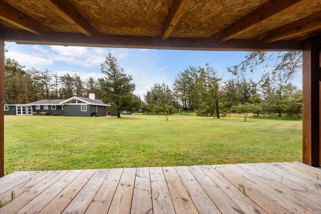 Sommerhuset ligger på en skøn og ugenert naturgrund, der indbyder til både ro og aktivitet. Her kan børnene løbe frit omkring, spille bold eller bygge huler mellem træerne, mens de voksne nyder solen på terrassen eller tager en lur i det fine shelter, der er placeret i et afsides hjørne af grunden. Det er det perfekte spot til en nat under stjernerne eller en hyggelig eftermiddag med snobrød over bål. Der er flere hyggelige kroge på grunden, hvor man kan sætte sig med en kop te og lytte til fuglene, mens vinden rasler i trækronerne – det er ferie, når den er bedst. De naturskønne omgivelser skaber en helt særlig ro, og det er nemt at finde ind i et langsomt ferietempo, hvor det handler om at nyde nuet og hinanden.