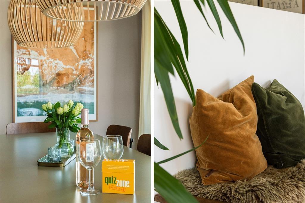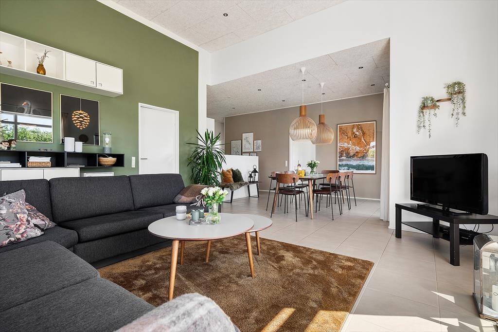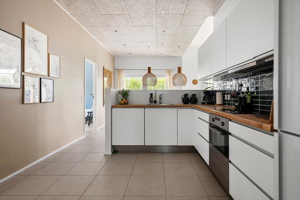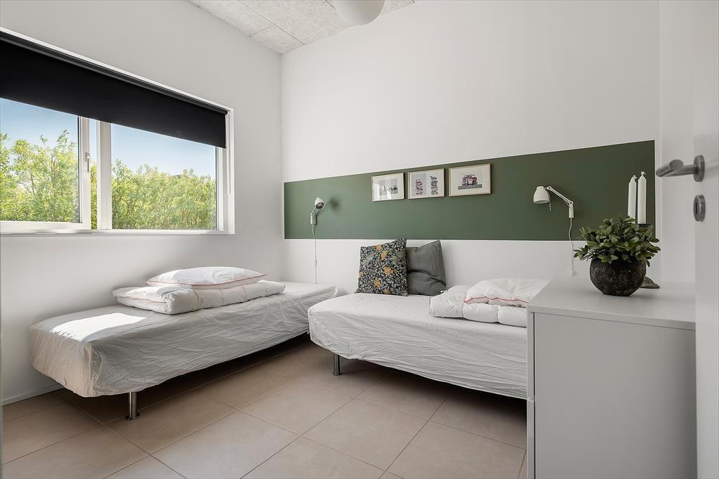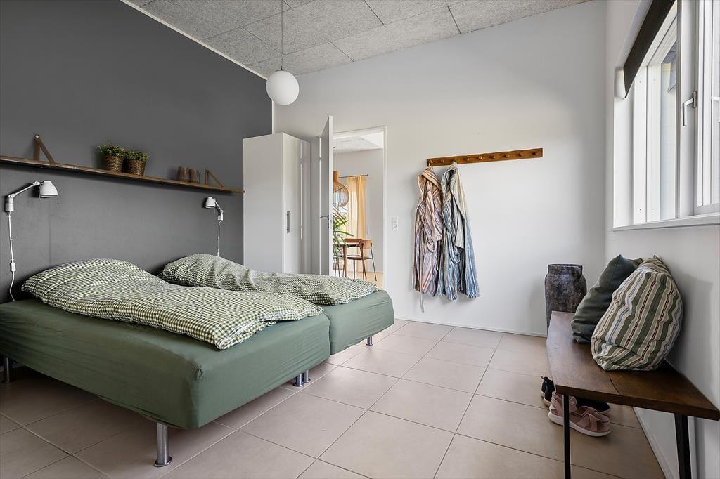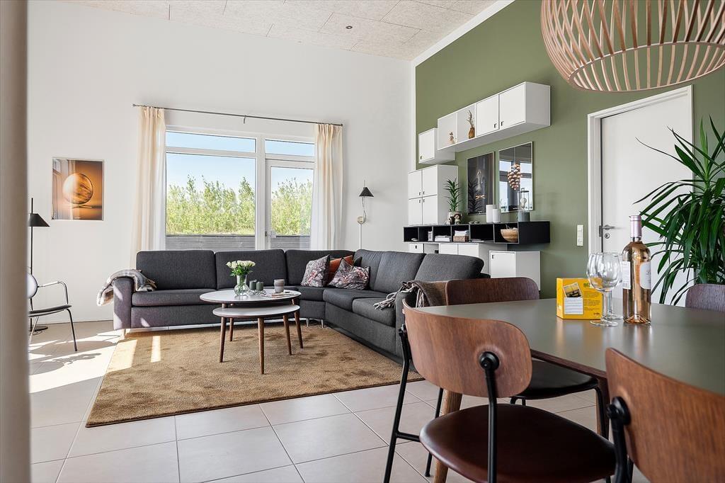 Det flotte sommerhus har en lys og indbydende indretning, hvor store vinduespartier og en gennemtænkt planløsning skaber en særlig stemning af luft, lys og ro. De fire rummelige værelser gør det let at være flere familier afsted, og med to badeværelser – heraf et med spa – er der god plads til både afslapning og hverdagskomfort. Det stilrene køkken ligger i åben forbindelse med stuen, så det sociale samvær aldrig skal sættes på pause, mens maden tilberedes. Her kan man sagtens samles om madlavning, spil og gode samtaler – og når aftenen falder på, indbyder den rolige atmosfære til sofahygge og måske en god film. Overalt i huset falder lyset smukt ind og giver en fornemmelse af nærhed til de naturskønne omgivelser udenfor. Her er det nemt at føle sig hjemme – og samtidig forkæle sig selv med det lille ekstra.