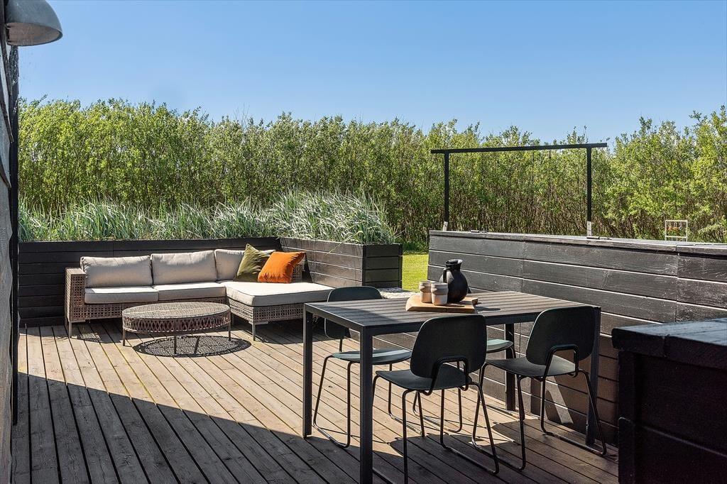 Den store, ugenerede grund er som skabt til ferieliv i det fri. Her er der masser af plads til leg og boldspil, og børnene kan boltre sig frit, mens de voksne nyder en kop kaffe i solen. Det grønne område omkring huset giver rig mulighed for at finde læ, sol eller skygge – alt efter, hvad dagen og humøret byder på. Terrassen er oplagt til både rolige stunder med en bog og hyggelige grillmiddage i aftensolen. Når mørket falder på, og stjernehimlen folder sig ud, kan man trække tæppet op om sig og nyde lydene af den stille natur omkring sig. I disse omgivelser er det nemt at give slip på hverdagen og bare være til stede i nuet. Her er der ingen naboer tæt på – kun naturens egen rytme og jeres helt egen ferieoase.