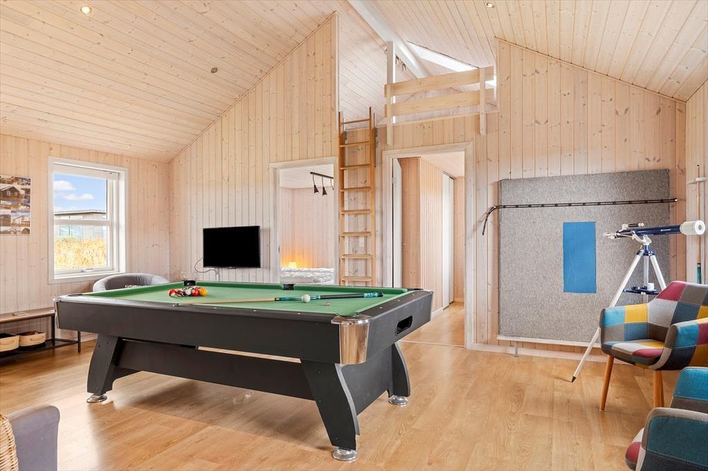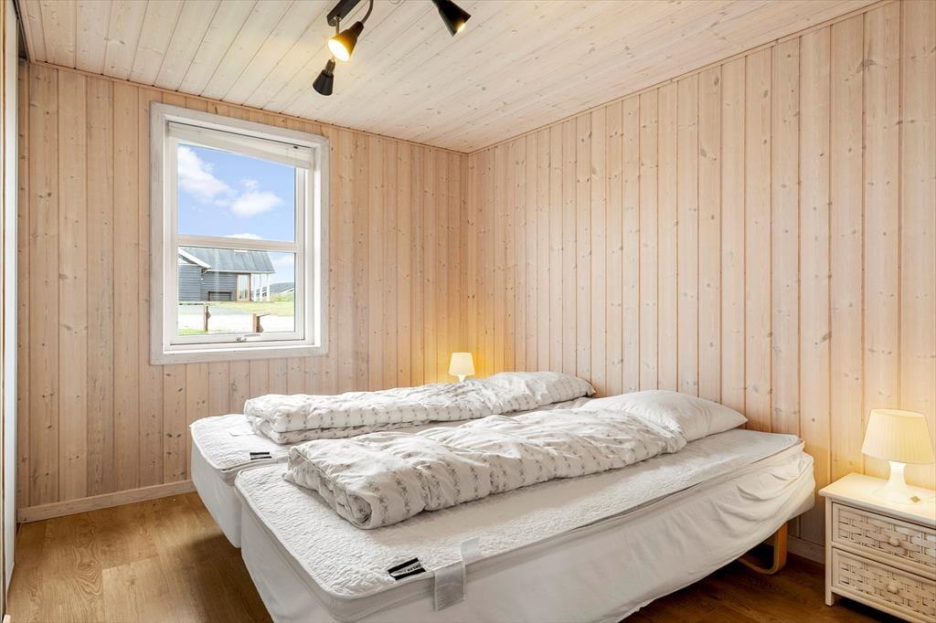 Det moderne sommerhus er lyst og indbydende indrettet med fokus på komfort og samvær. Hjertet af huset er det store opholdsrum, hvor køkkenet ligger i åben forbindelse med stuen – et perfekt samlingspunkt, hvor samtalerne kan flyde frit, mens du snitter grønt til aftensmaden. De store vinduespartier lukker det naturlige lys ind og giver dig følelsen af at være i ét med naturen, selv når du er indenfor. I huset finder du tre rummelige soveværelser og to lækre badeværelser. Det ene badeværelse er udstyret med både spabad og sauna – ideelt til afslapning efter en lang gåtur langs vandet eller en frisk dukkert i Vesterhavet. Når I trænger til lidt ekstra underholdning, kan I trække jer tilbage til aktivitetsrummet, hvor både børn og voksne kan få tiden til at flyve af sted med spil og grin. Alt i alt er dette sommerhus indrettet med øje for både komfort, hygge og fællesskab.
