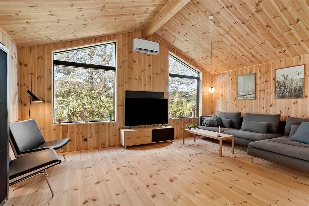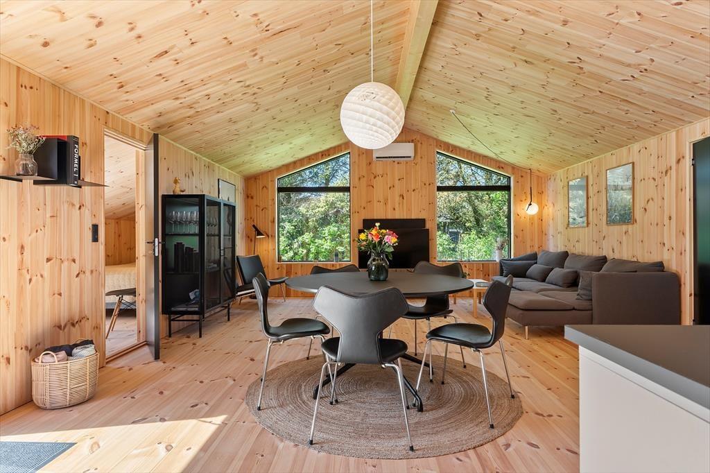 Sommerhus i Nr. Lyngby, Nordjylland, med plads til 6 voksne. Der er en hyggelig indretning, og du finder desuden vaskemaskine og opvaskemaskine i boligen.