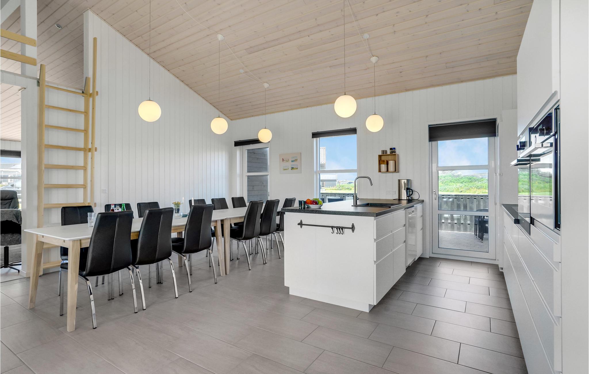 Huset er stort og rummeligt med plads til 14 personer og to hunde, så her kan en stor gruppe holde ferie sammen. I kan se frem til store lyse rum i en enkel farveskala og moderne inventar. Der er vinduer til alle sider, så det åbne landskab føles meget tæt på, også når I sidder samlet omkring spisebordet, og i sommermånederne kan I rykke ud på terrassen og tænde op i grillen.