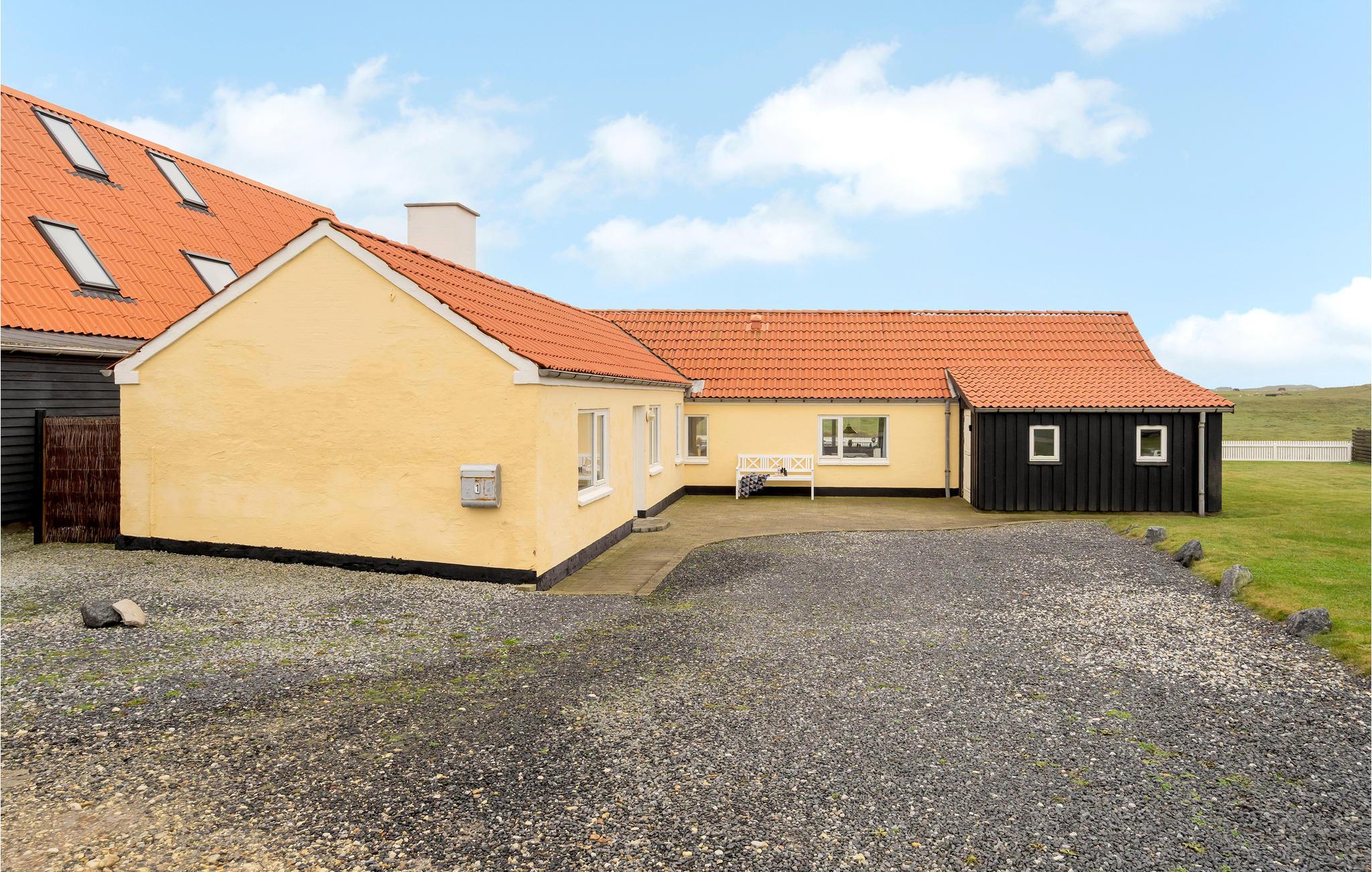 Dette rummelige feriehus ligger få skridt fra kysten ud mod det fascinerende Vesterhav. Gårdhuset er flot og klassisk med lysegul facade, og indvendig kan I se frem til en hyggelig bolig med gode faciliteter. Her får I en god base, hvor I kan slappe af mellem jeres ture i området. Når vejret er godt, kan I slappe af på terrassen eller tænde op i grillen, mens børnene leger.