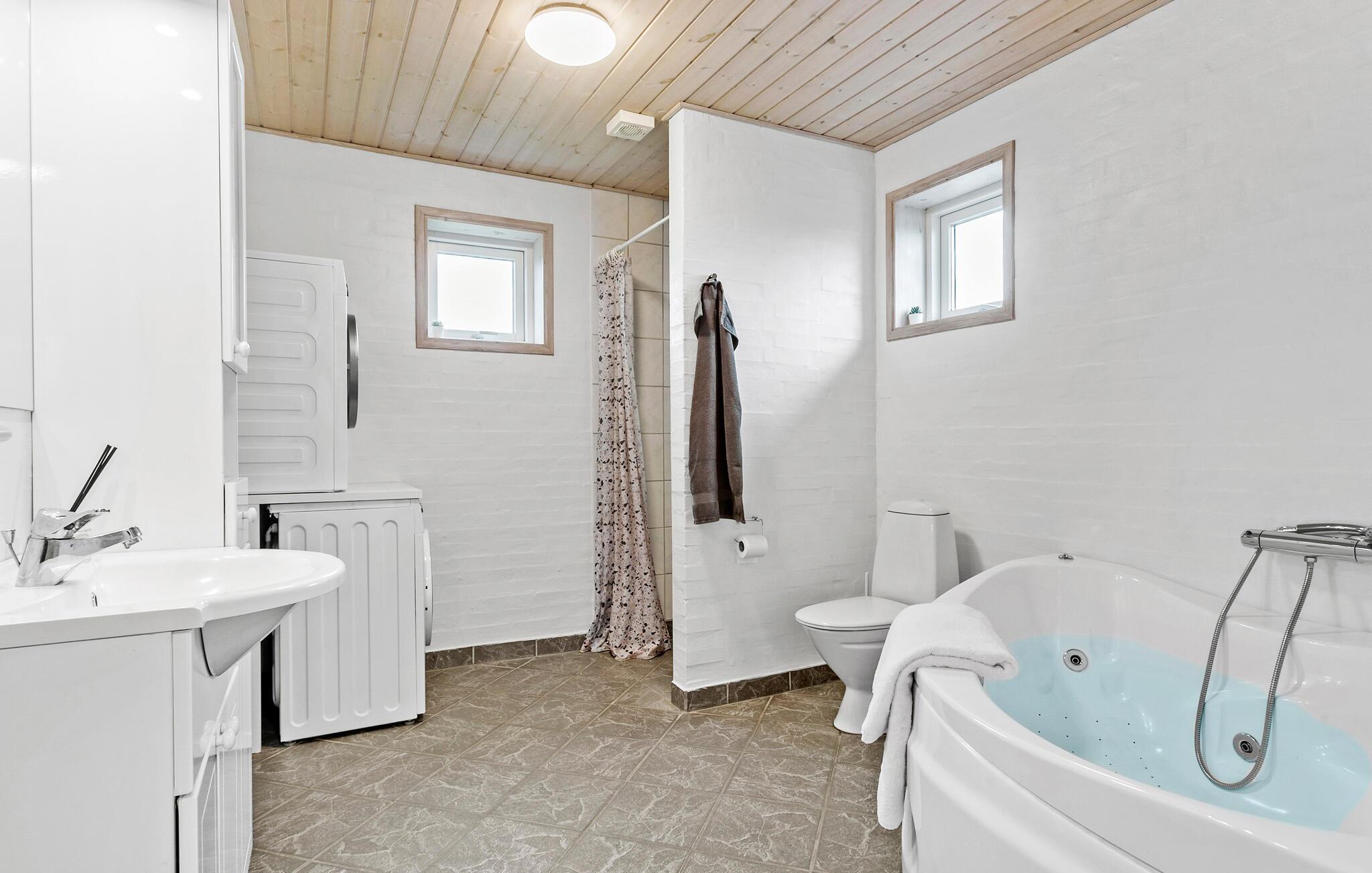 Velkommen til dette veludstyrede hus, der ligger i dejlige omgivelser lidt nord for Løkken og danner rammen om årets ferie med den udvidede familie. Huset er virkelig flot indrettet med store fællesrum, dejlige lysindfald gennem de mange vinduespartier og et fuldt udstyret køkken, hvor familiens kokke kan kræse om livretterne efter en herlig feriedag. Uanset vejret kan I bruge mange gode timer i pool-afdelingen, hvor de små kan plaske rundt i poolen, mens de voksne hviler krop og sind i saunaen og spabadet. Skulle vejret vise lidt tænder, kan I tænde op i brændeovnen og nyde dens varme, knitrende lydtapet til aftenhyggen i sofahjørnet eller til et slag pool eller bordfodbold, mens I lægger planer for de kommende dage.