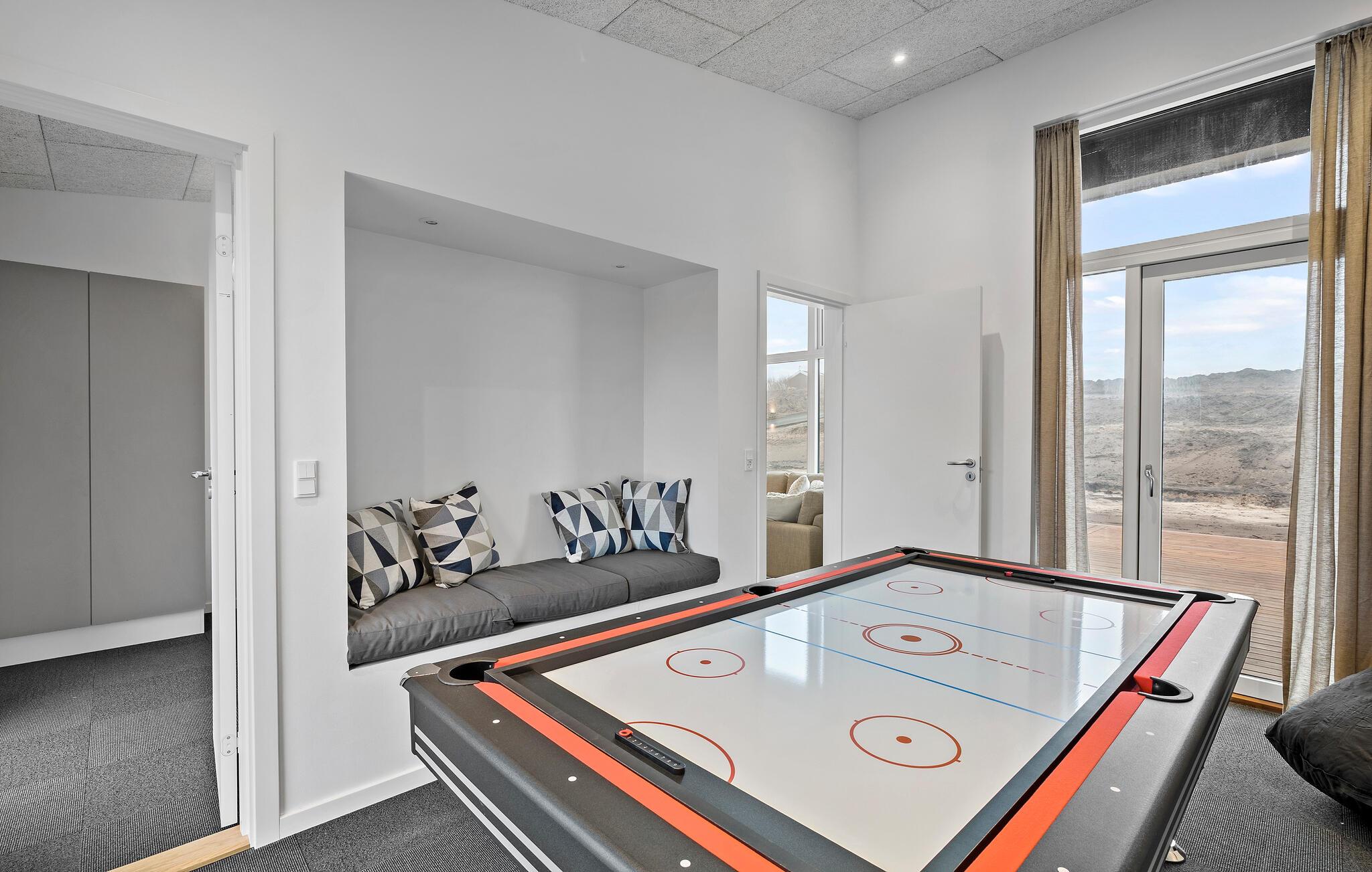 Der er sjove oplevelser til alle i dette veludstyrede hus. Tag en lille dyst over et spil billard. Snup en frisk dukkert i det udendørs spabad på terrassen eller læn jer tilbage i saunaen og nyd varmen. Bålstedet i haven giver jer mulighed for en hyggelig afslutning efter en lang dag fyldt med oplevelser.