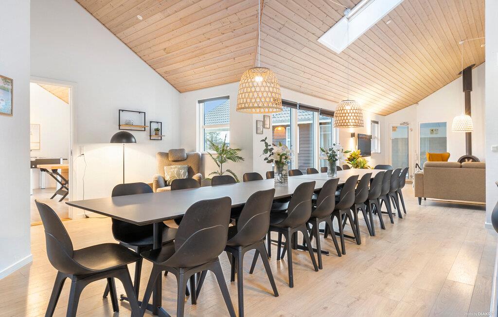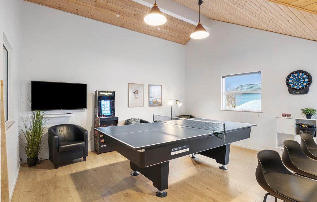 Rummeligt feriehus i Nr. Lyngby med pool, sauna, aktivitetsrum og plads til flere familier.