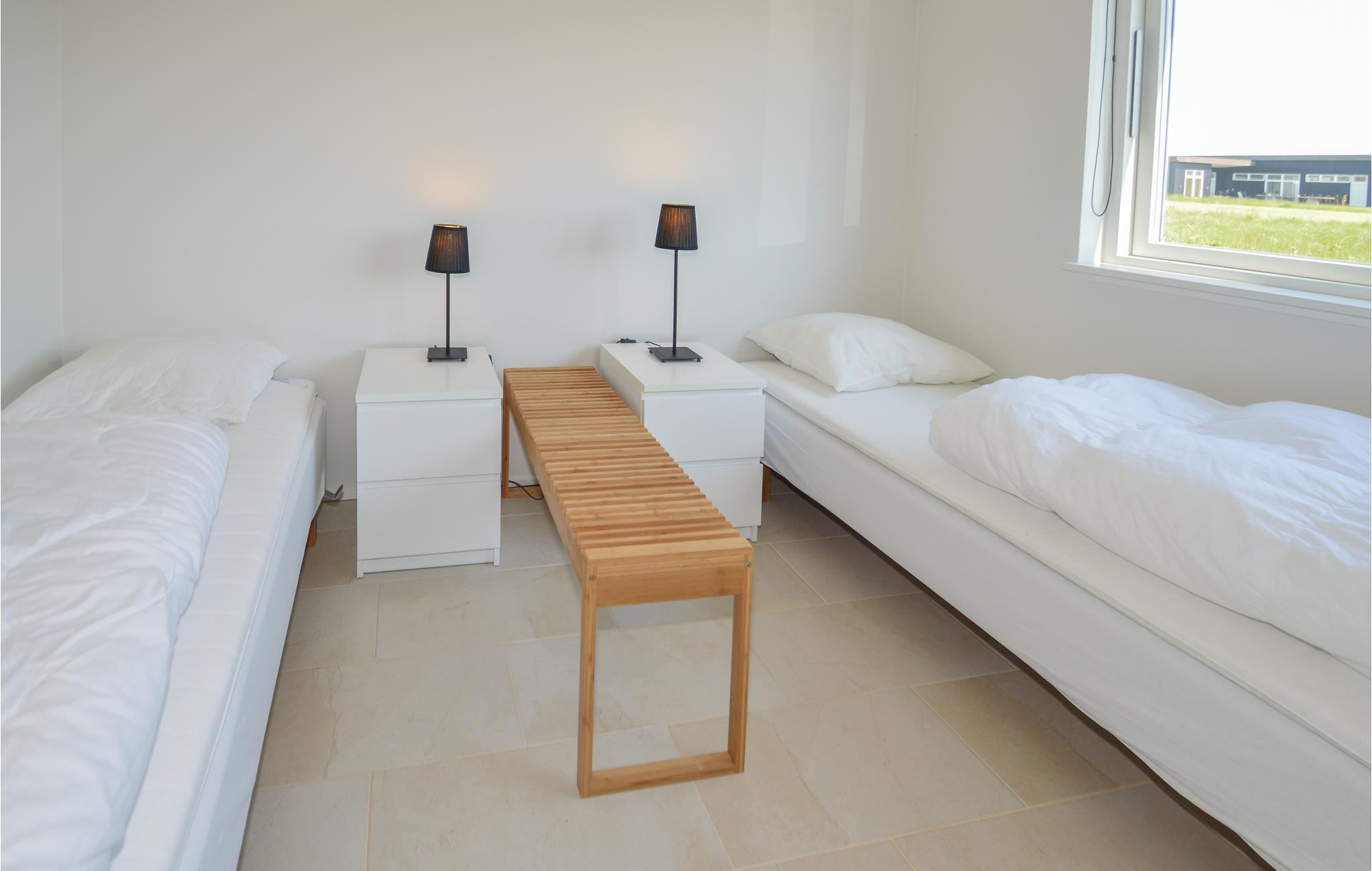 Velkommen til dette arkitektonisk interessante sommerhus, hvor I kan tilbringe en afslappende ferie. Med 4 soveværelser og 2 badeværelser kan det rumme op til 8 personer. I 2 soveværelser er der komfortable dobbeltsenge, i de to andre er der 2 enkeltsenge i hver. Indretningen er moderne og enkel, efter en lang dag med aktiviteter kan I nyde en afslappende stund i jacuzzien.