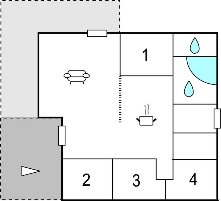 Badeværelse 6m2 (nr. 1) - WC. Varmt og koldt vand. Bruser