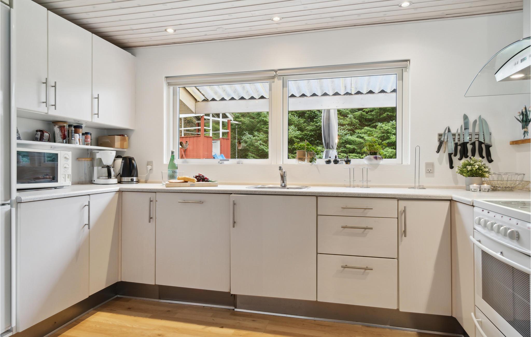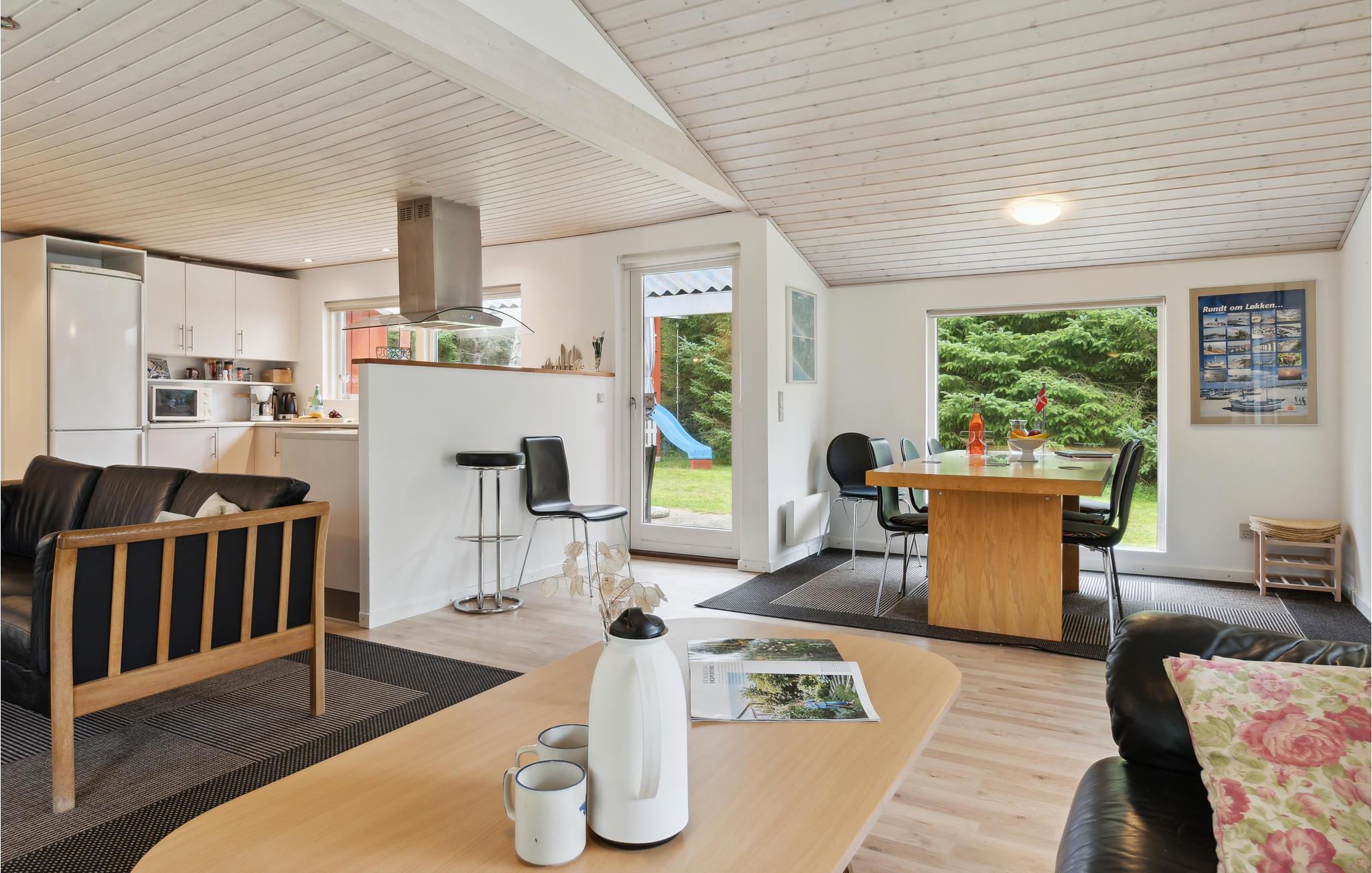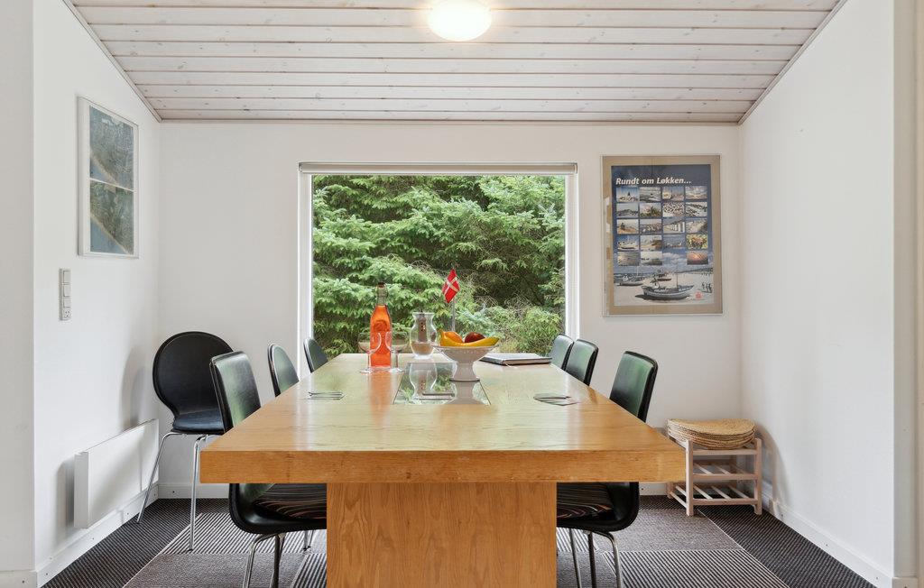 Ikke langt fra den brede sandstrand og en markant, høj kyst ligger dette feriehus i læ af stedsegrønne nåletræer i et roligt ferieområde. I det afvekslende klitlandskab kommer man ad de afmærkede vandre- og cykelstier tæt på et rigt dyreliv, og det er altid afslappende at nyde udsigten fra de høje klitter eller lade det forfriskende Vesterhav skylle om de bare fødder. Her er også et paradis for paraglidere, der kan sætte af fra de høje klinter. Vil man spille golf, er der for både nybegyndere og øvede gode golfbaner i Løkken og i Blokhus. Skal man bidrage med frisk fisk til aftenmåltidet, er der gode fiskepladser fra molen, ved stranden eller i put & take søer i området. Der er kun ca. 5 km til den livlige badeby Løkken med et Action- House med bowling, gokarts, laser-games og meget mere, og der mangler heller ikke diskoteker, gode cafeer og restauranter. Sjovt bliver det, når man kan vælge mellem 50 forlystelser i Fårup Sommerland eller boltre sig i det store udendørs vandland, og på Family Farm Fun Park vil de små nyde at komme tæt på en stor variation af tamme dyr. Vil man se hvad havet og sandflugten i denne til tider barske egn kan udrette, skal man tage til Rubjerg Knude Fyr, som har måttet opgive kampen mod sandflugten og nu er ved at sande til.