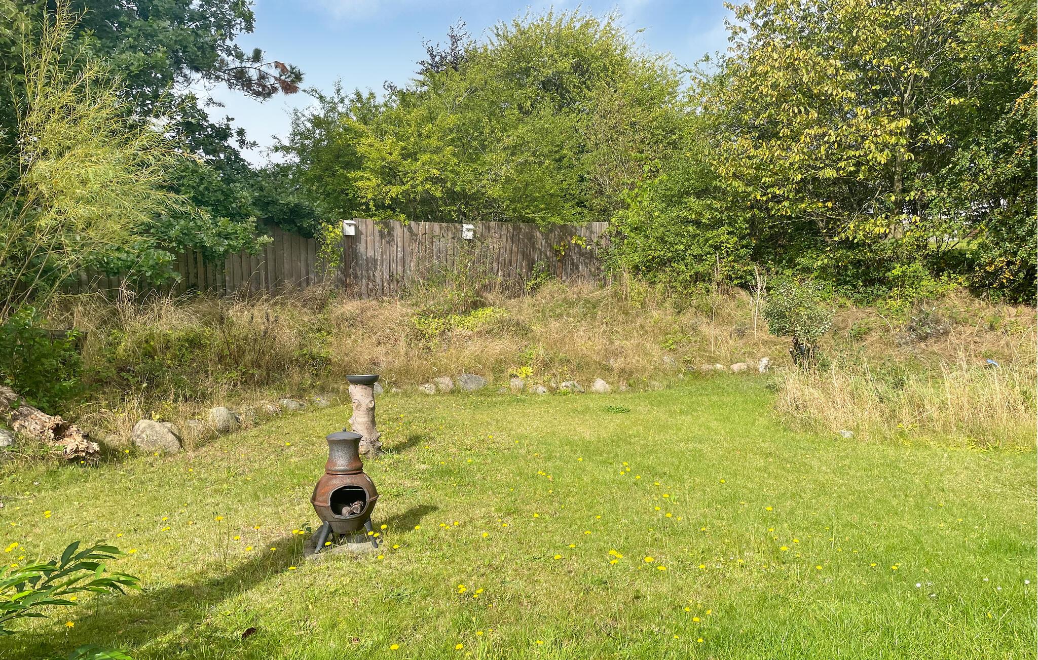 Vælg en plads på de forskellige terrasseområder, som breder sig rundt om huset, og nyd havens grønne omgivelser. Leg eller tilbring rolige stunder sammen på græsplænen. Tænd et bål i den lille havepejs om aftenen, og lad dagen slutte under åben himmel.