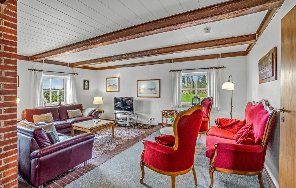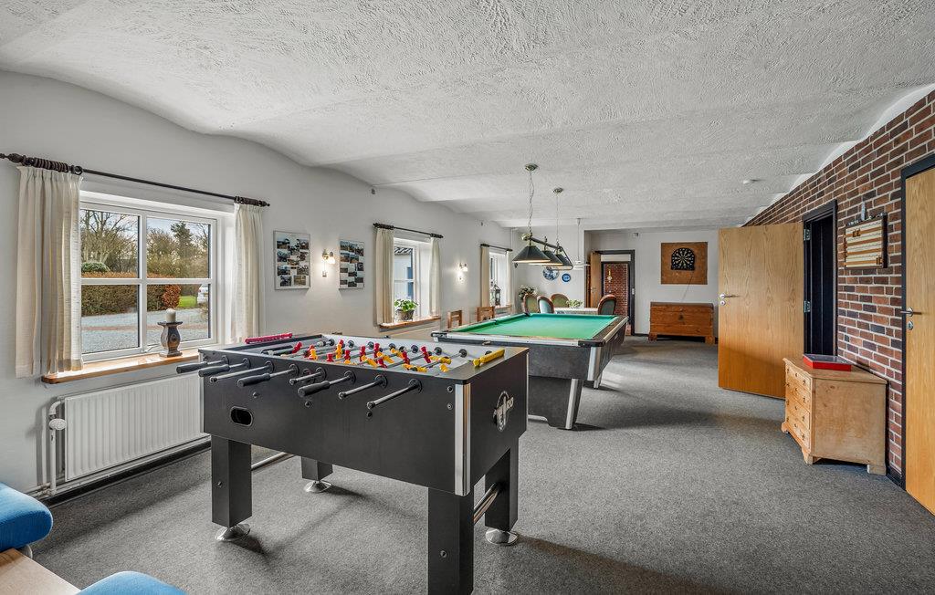 Dette flotte landsted er en skøn ramme om ferien med børnenes fætre og kusiner eller en stor vennegruppe. Her får I gode lokaler til at samles om måltider og hyggestunder, og samtidig kan alle trække sig tilbage til deres værelser, når de trænger til en alenestund. Der er også sørget for underholdningen, for I kan både tage et spil billard og bordtennis. Efter en lang dag på farten kan I sætte jer i saunaen eller tænde op i brændeovnen og snakke om, hvad I skal ud at opleve næste gang, mens varmen breder sig.