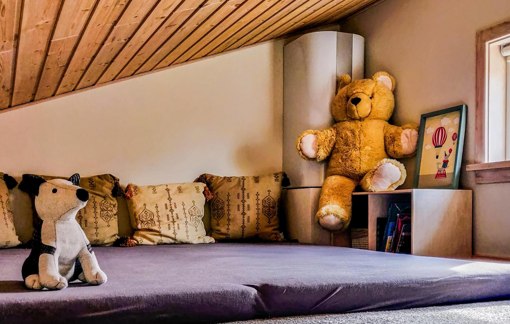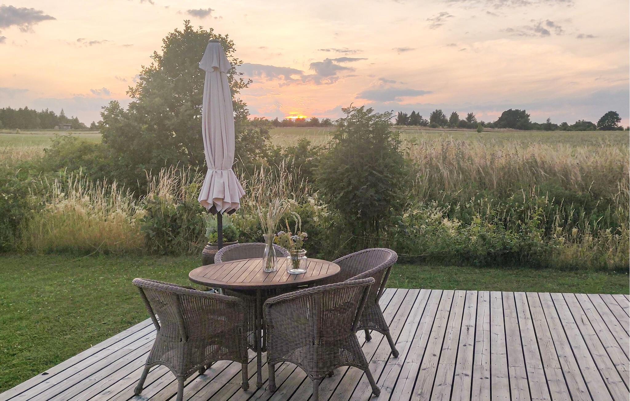 Fint og funktionelt lille køkken. Pænt badeværelse med gulvvarme. Feriehusets hems er kun beregnet til børn. Dejlig stor træterrasse med udsigt til grønne arealer og velegnet til solbadning og aftenhygge. Separat anneks med to sovepladser. Fra huset er der direkte adgang til de to smukke 18 hullers golfbaner.
