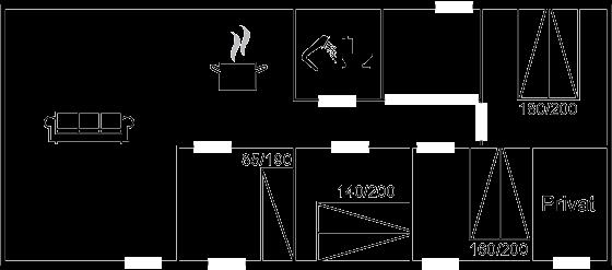 Der er i alt 3 soveværelser. Sovepladserne fordeler sig på: 6 sovepladser i dobbeltsenge.