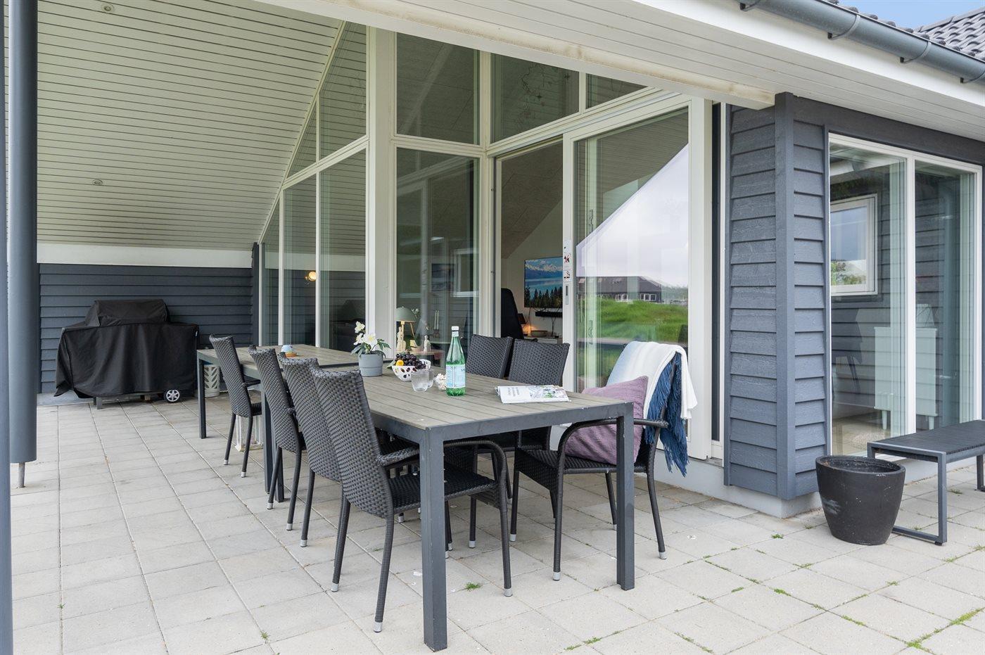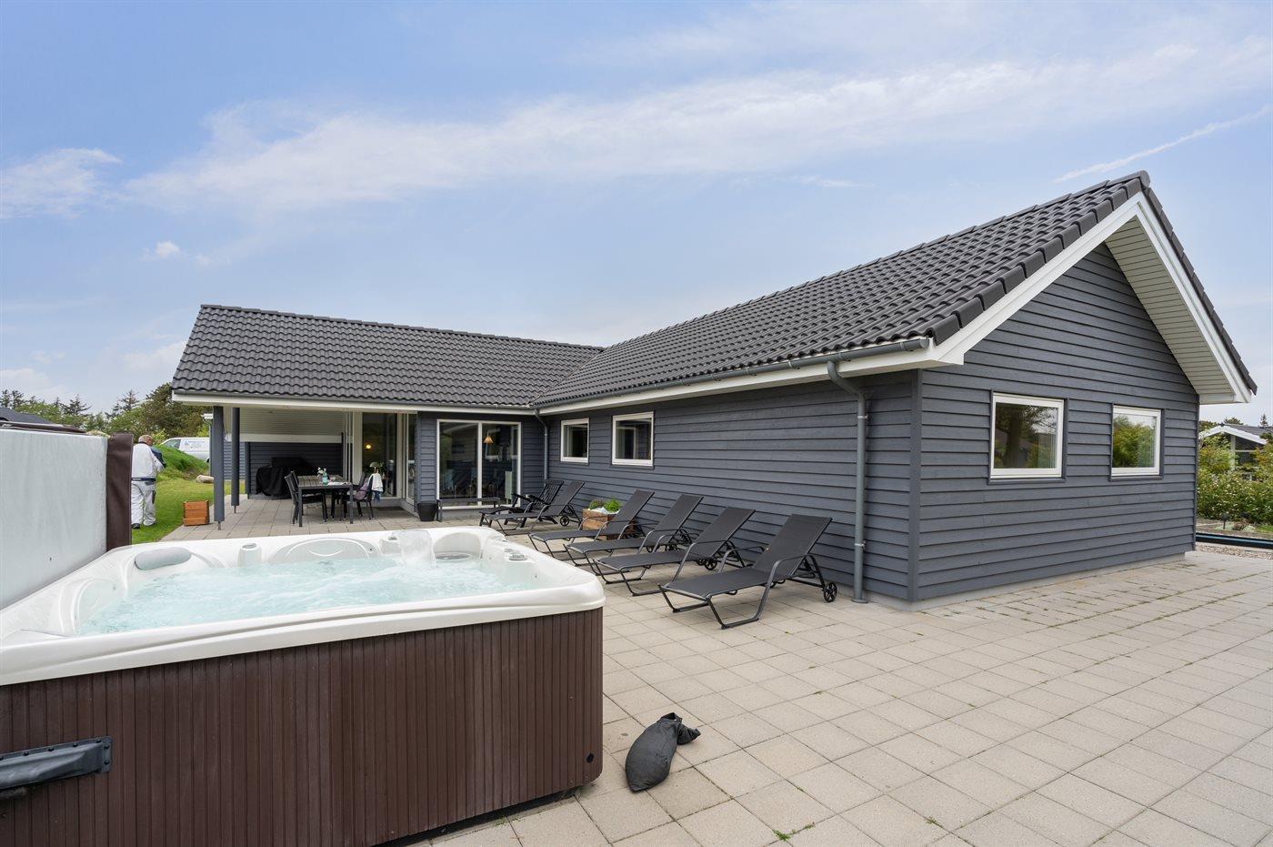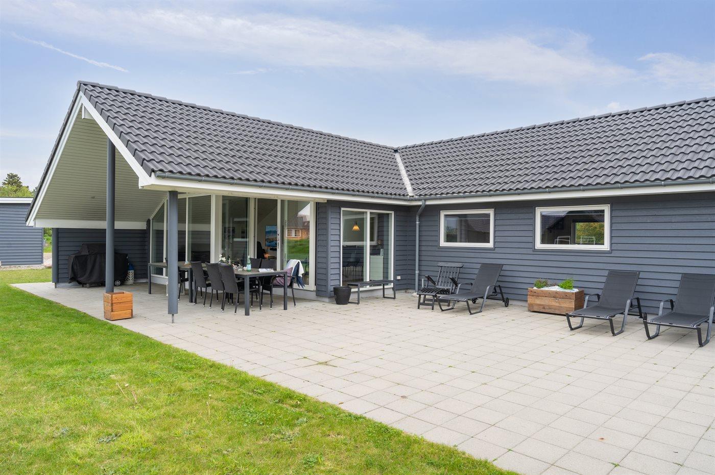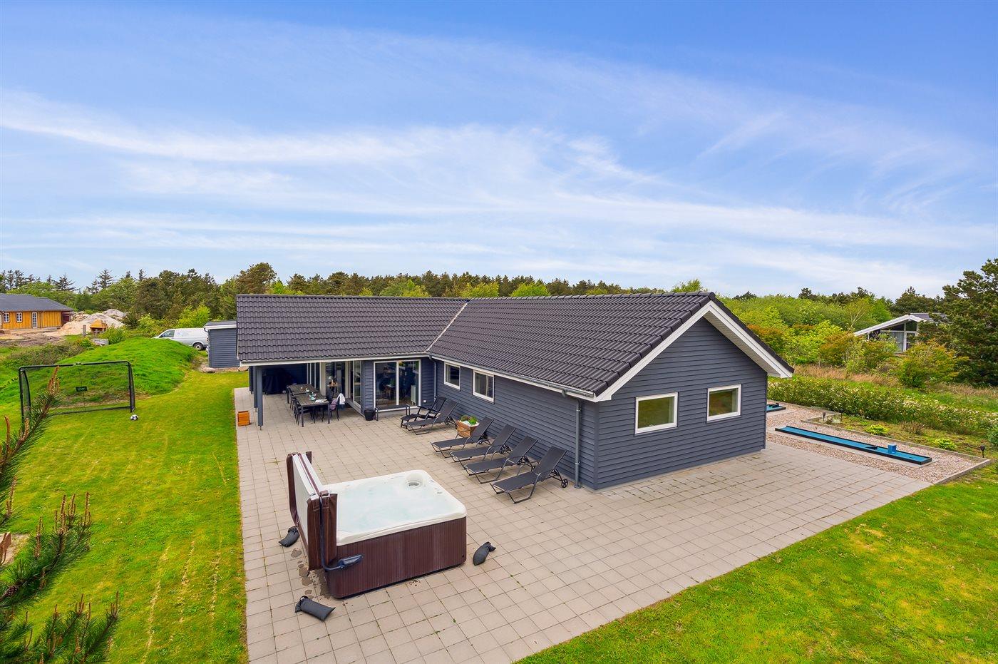Ferieboligen er beliggende på en 2502 m² stor havegrund. Der er 4500 m til havet. Der er 300 m til Vadehavet. Nærmeste forretning er beliggende i en afstand af 2500 m. Der er en golfbane i en afstand af 4000 m. Til ferieboligen hører åbent terrasseareal. Desuden er der overdækket terrasse. Der er redskabsrum. Gynge. Sandkasse. Legetårn. Rutchebane. Fodboldmål. Shelter. Grill til rådighed. Der er installeret stik til opladning af elbil. Type 2 stik. Parkering ved ferieboligen.