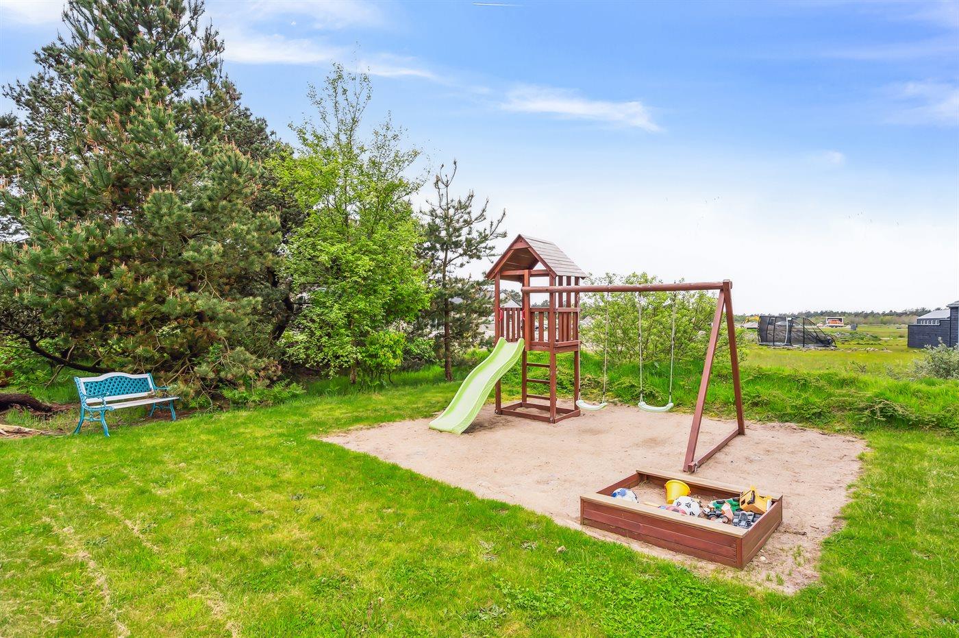Udendørs er der tænkt på både store og små gæster med liggestole, havemøbler, grill, gynger og sandkasse. I det mindste skur finder I solvogne samt hynder og andre bekvemmeligheder.