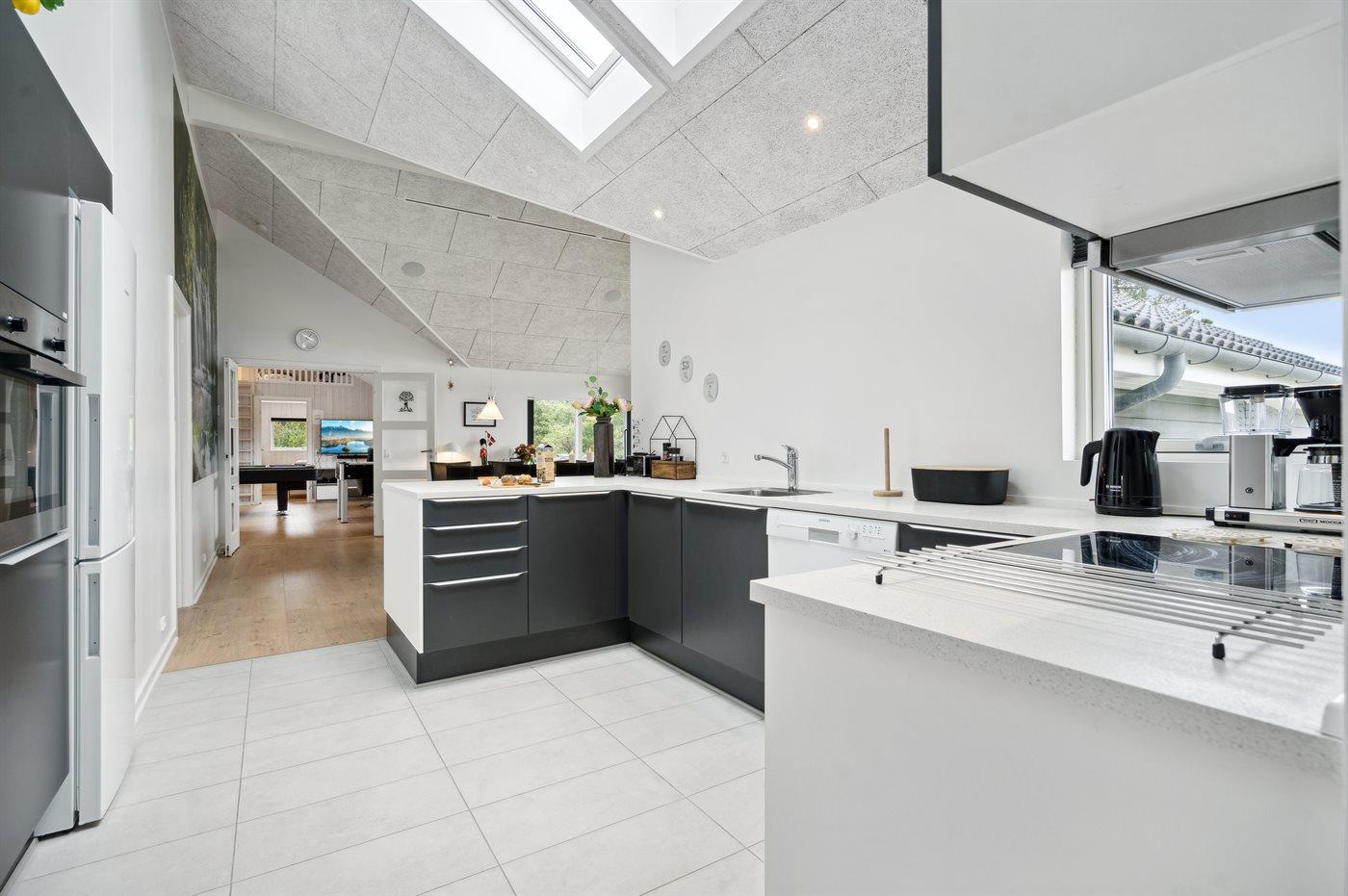 Køkkenet er udstyret med 1 køleskab. Der er 4 induktionskogeplader, varmluftovn samt opvaskemaskine.