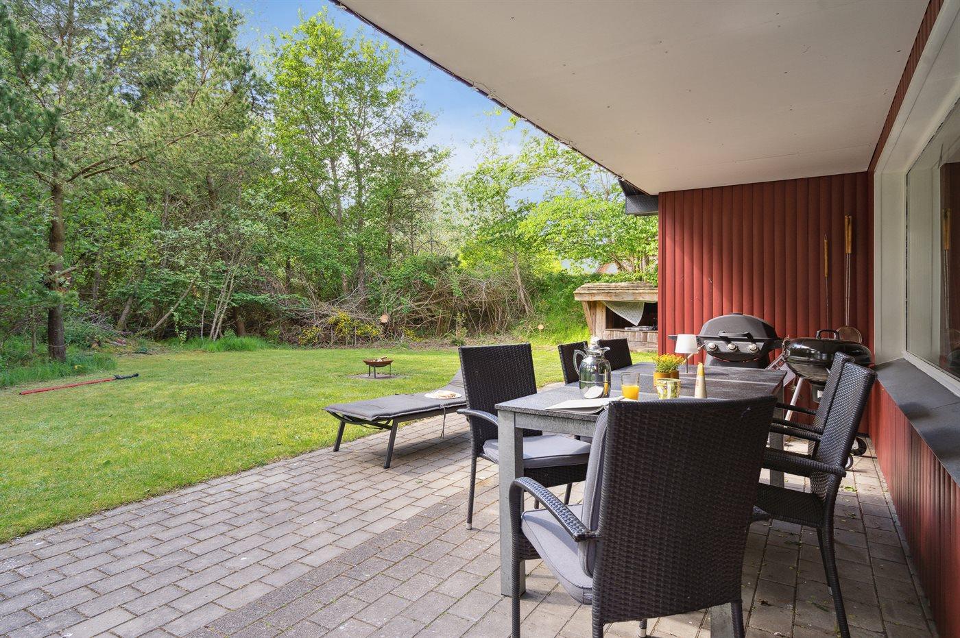 Ferieboligen er beliggende på en 2500 m² stor naturgrund. Der er 3200 m til havet. Der er 400 m til Vadehavet. Nærmeste forretning er beliggende i en afstand af 1000 m. Der er en golfbane i en afstand af 2000 m. Til ferieboligen hører åbent terrasseareal. Desuden er der overdækket terrasse. Gynge. Sandkasse. Trampolin. Shelter. Grill til rådighed. Parkering ved ferieboligen.