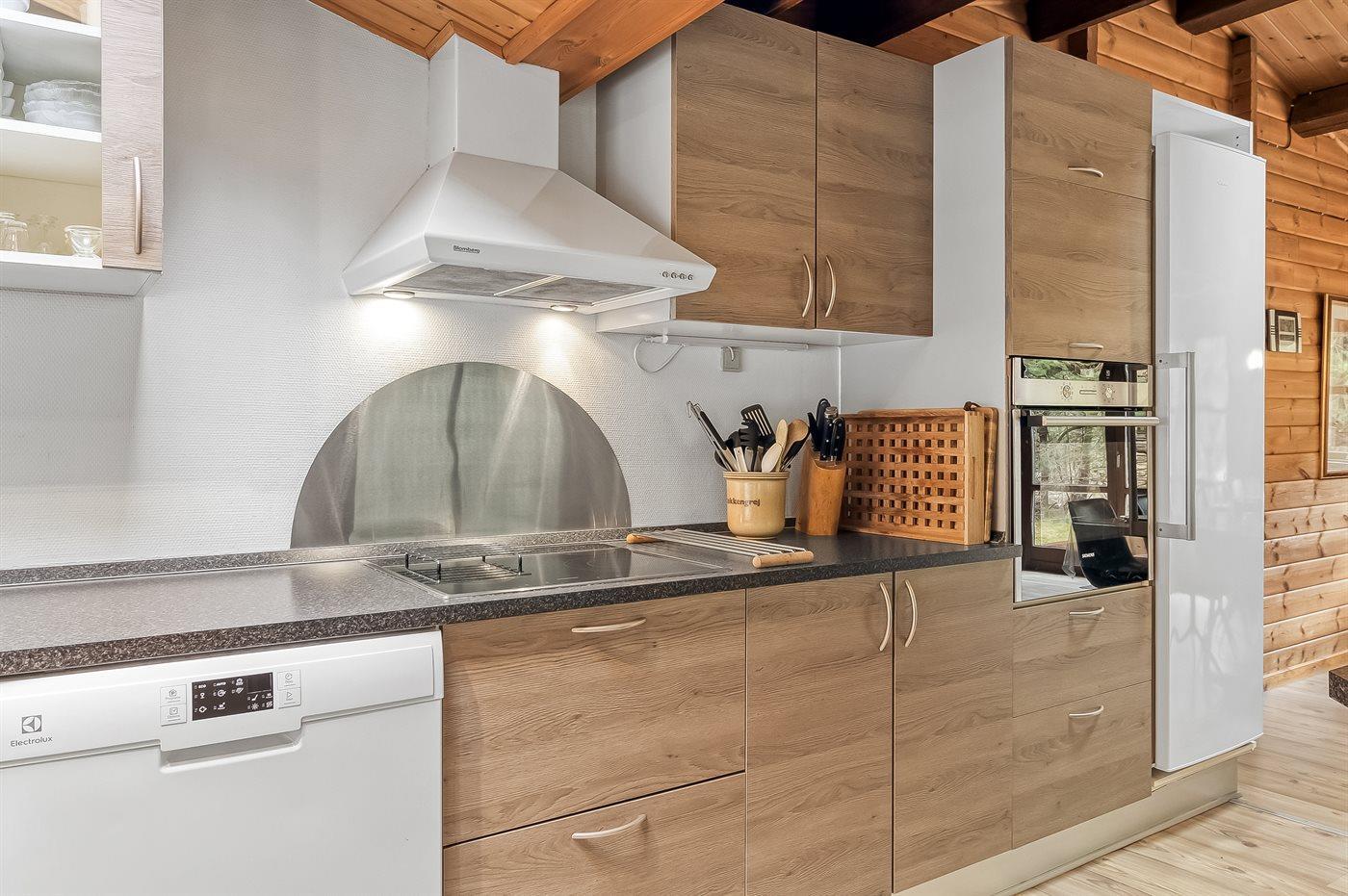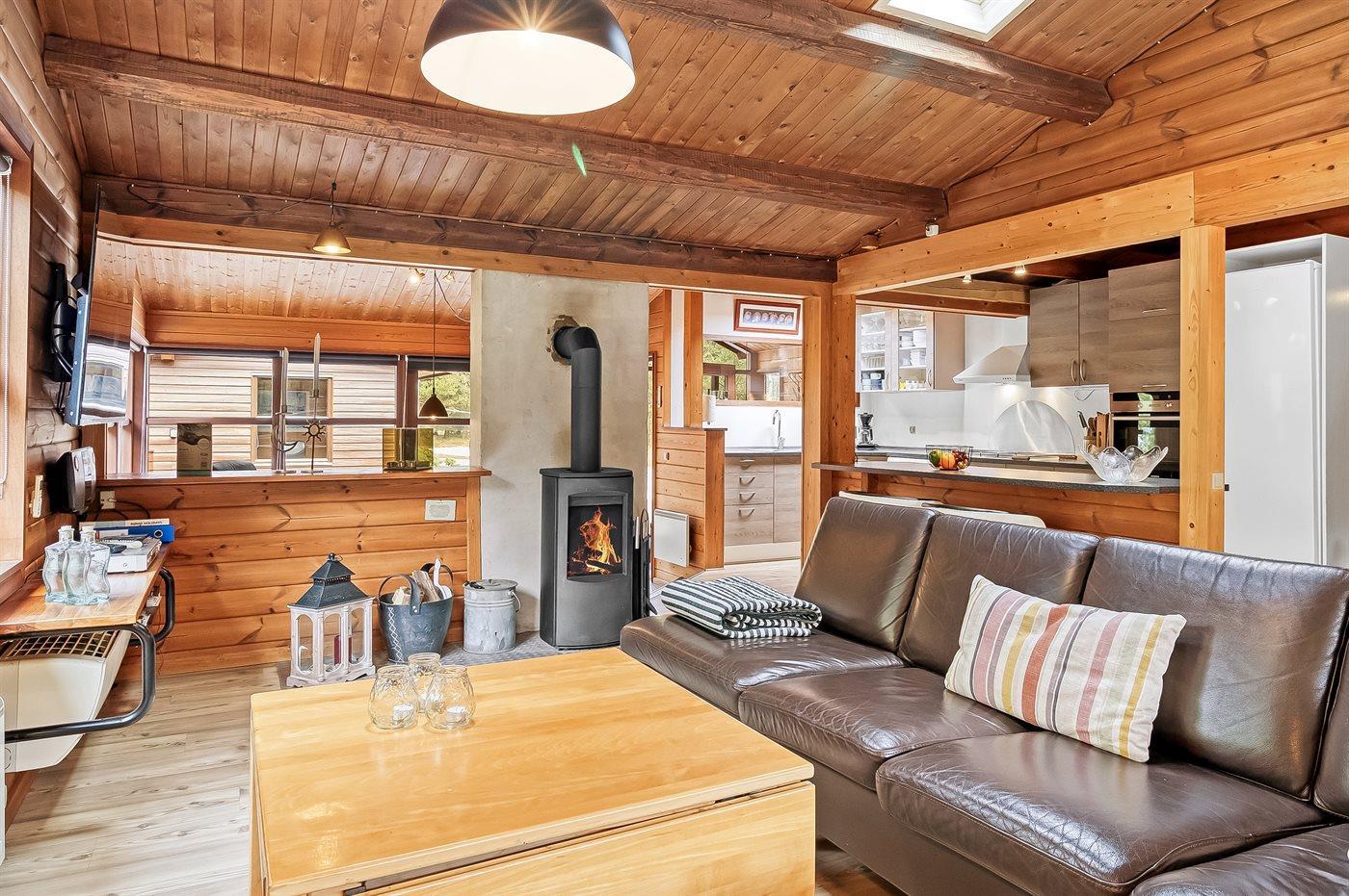 Det dejlige, lyse køkken ligger med adgang til stuen/spisestuen og er udstyret med bl.a. fryser (120 liter), mikrobølgeovn og opvaskemaskine. Opholdsstuen er indrettet med bl.a. 42" fladskærms-TV med parabolantenne, stereoanlæg med CD-afspiller samt brændeovn. Desuden gratis internetforbindelse til rådighed (computer skal medbringes) og safety-boks til rådighed. Ekstra TV med parabolantenne og DVD-afspiller i anneks.