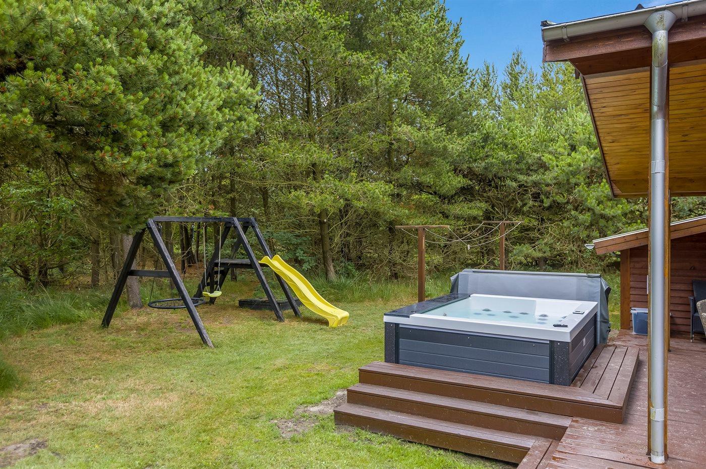 Dette flotte sommerhus i træ, bygget i 1972 og moderniseret i 2003, ligger på en flot, ugeneret grund ikke langt fra stranden. Til huset hører et stort, såvel nord- som sydvendt og til dels overdækket terrasseareal med havemøbler og skøn udendørs spa til 5 personer (standvand), som kan benyttes hele året.