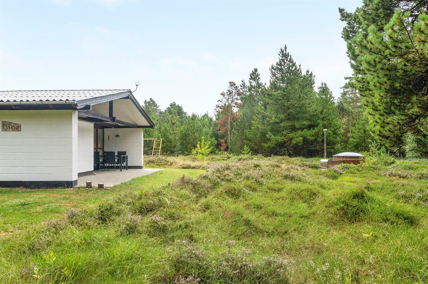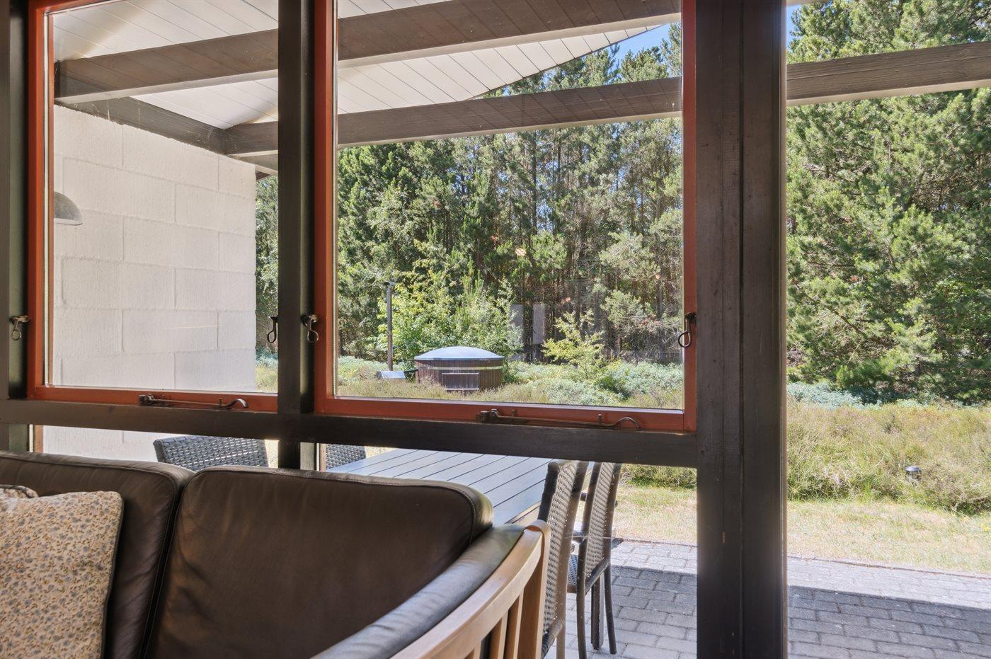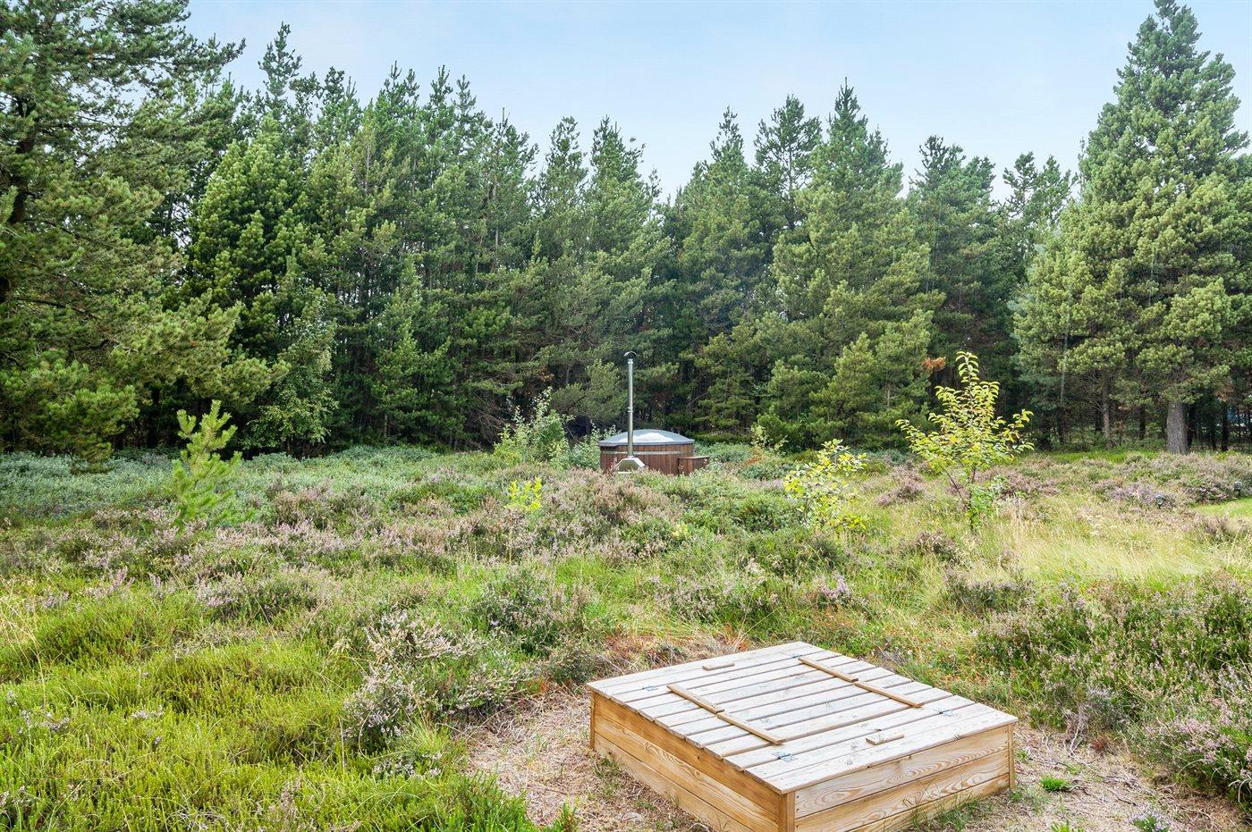 Udeområderne inviterer til afslapning fra morgen til aften. Der er både åbne og overdækkede terrasser med havemøbler, så I altid kan finde et solrigt eller læfyldt sted. Særligt fremhæves det udendørs vildmarkskar til op til seks personer, som kan bruges året rundt og om sommeren også fungerer som pool.