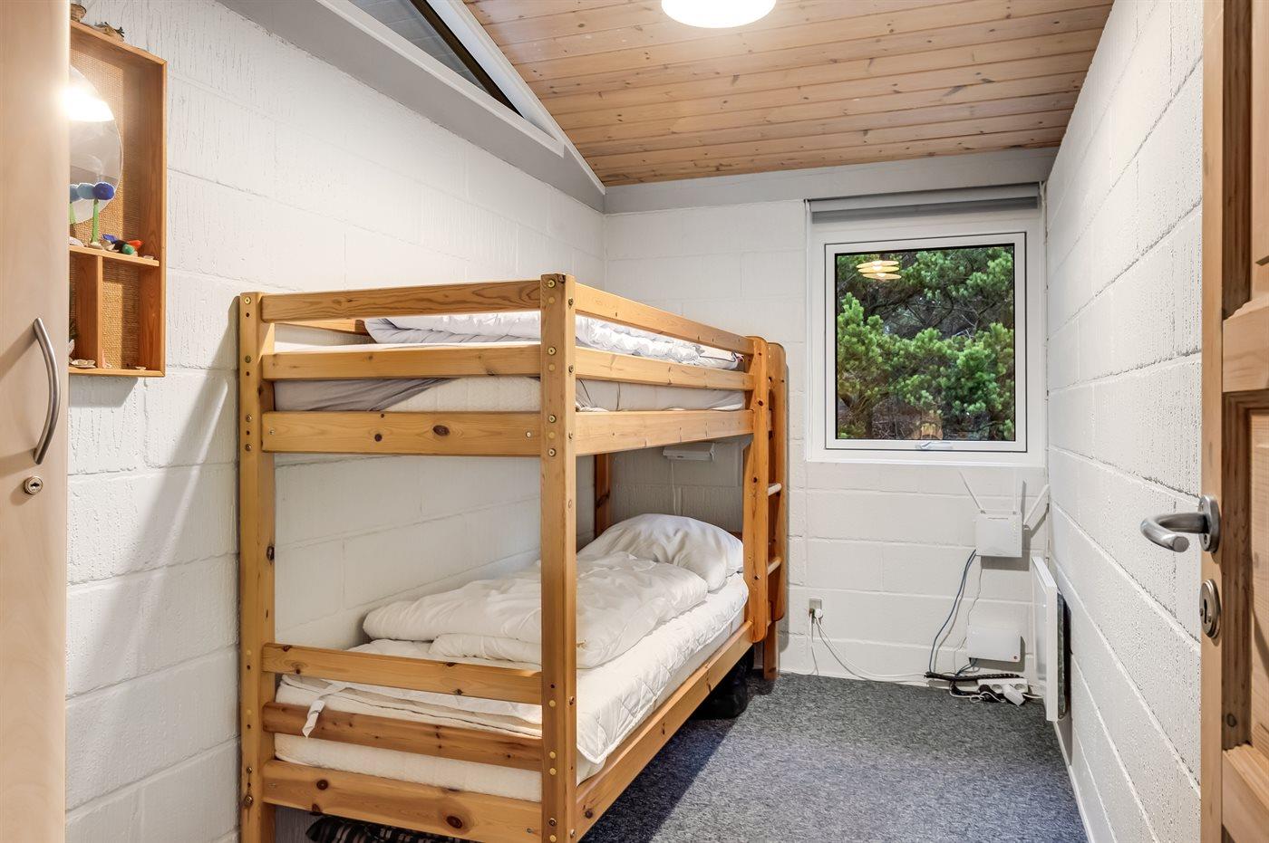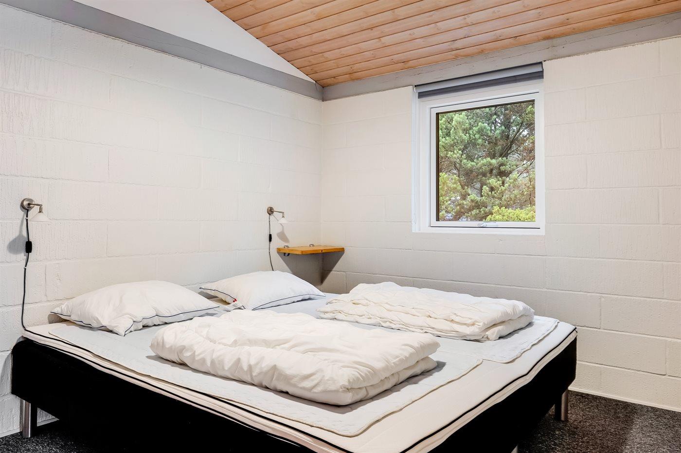 Indenfor er der tre soveværelser: fire sovepladser i dobbeltsenge og to i en køjeseng. En barneseng samt rigeligt med opbevaringsplads er også tilgængelig. Badeværelset har bruser, toilet og gulvvarme. Køkkenet er godt udstyret med køleskab, komfur, ovn, mikrobølgeovn og opvaskemaskine.