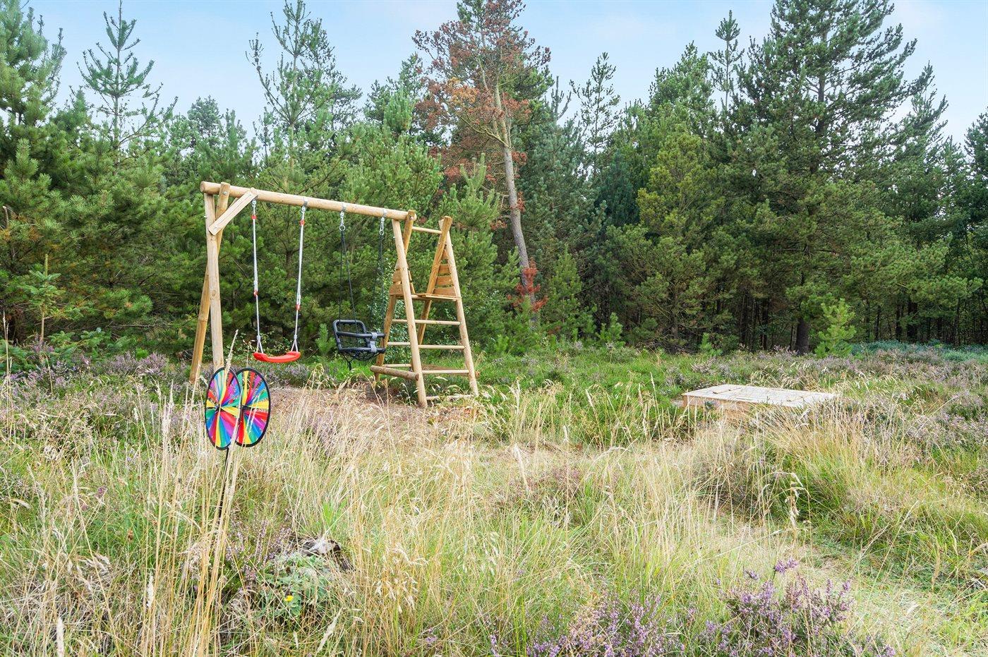 Den 2.500 m² store grund byder på masser af plads til leg og aktiviteter: gynge, babygynge, klatrestativ med rutsjebane og sandkasse gør huset særligt familievenligt. Der er parkeringsmulighed lige ved huset.