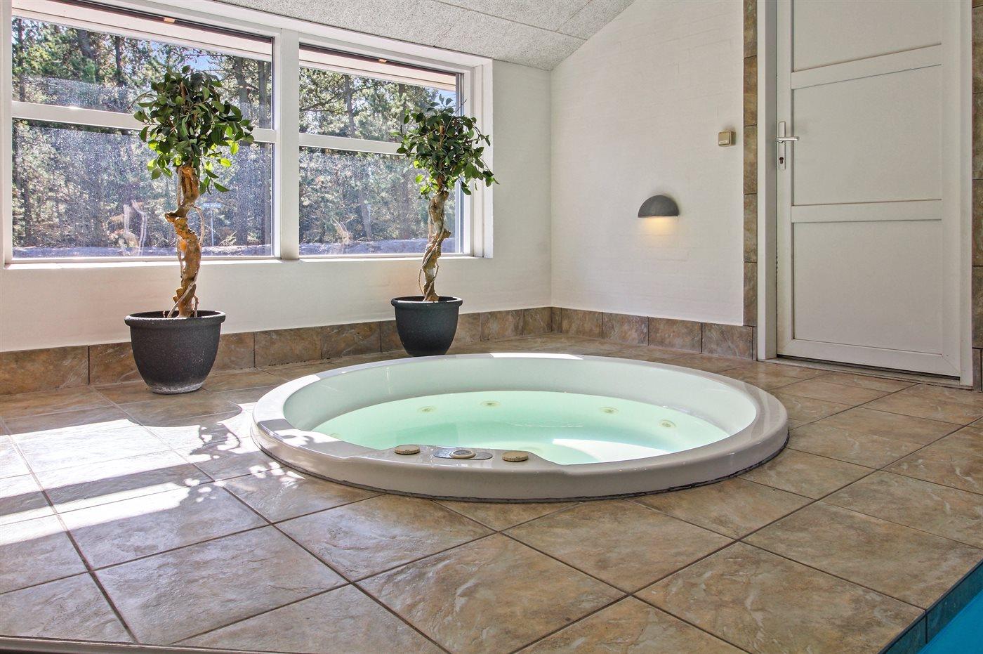Rummeligt sommerhus på stor naturgrund nær havet med pool, spa og aktivitetsrum til en afslappende ferie.