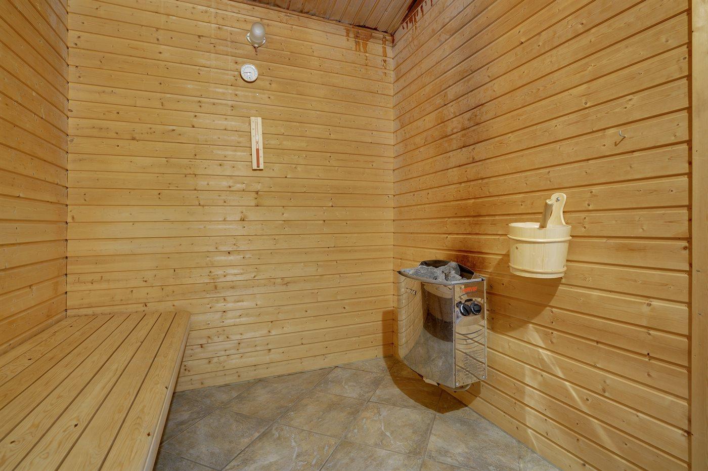 Der er 3 badeværelser med bruseniche og 3 toiletter. Der er gulvvarme på 3 badeværelser. I saunaen er der mulighed for afslapning.