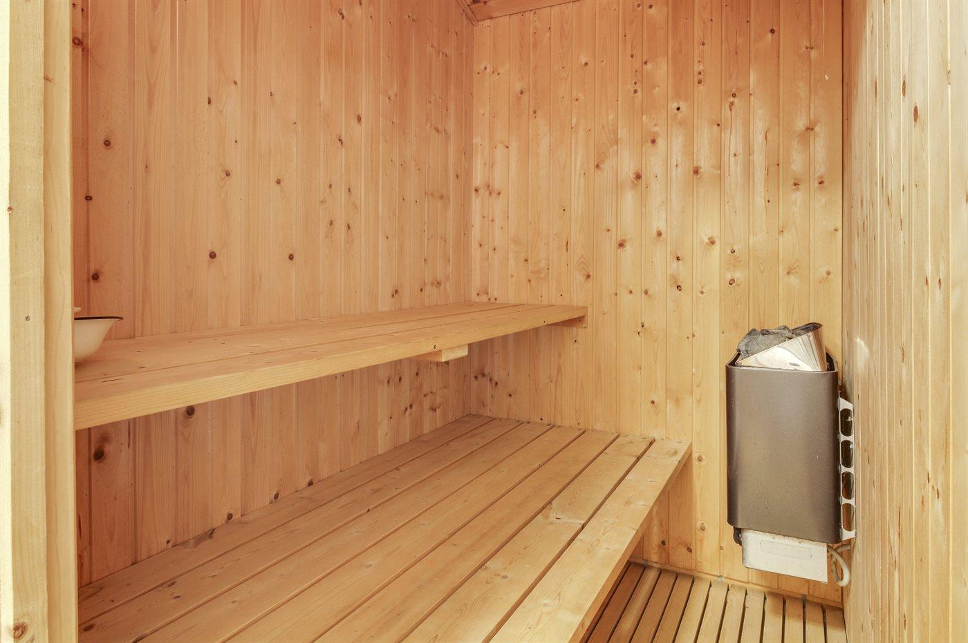 Der er 1 badeværelse med bruser og 1 toilet.. Der er gulvvarme på 1 badeværelse. I saunaen er der mulighed for afslapning.