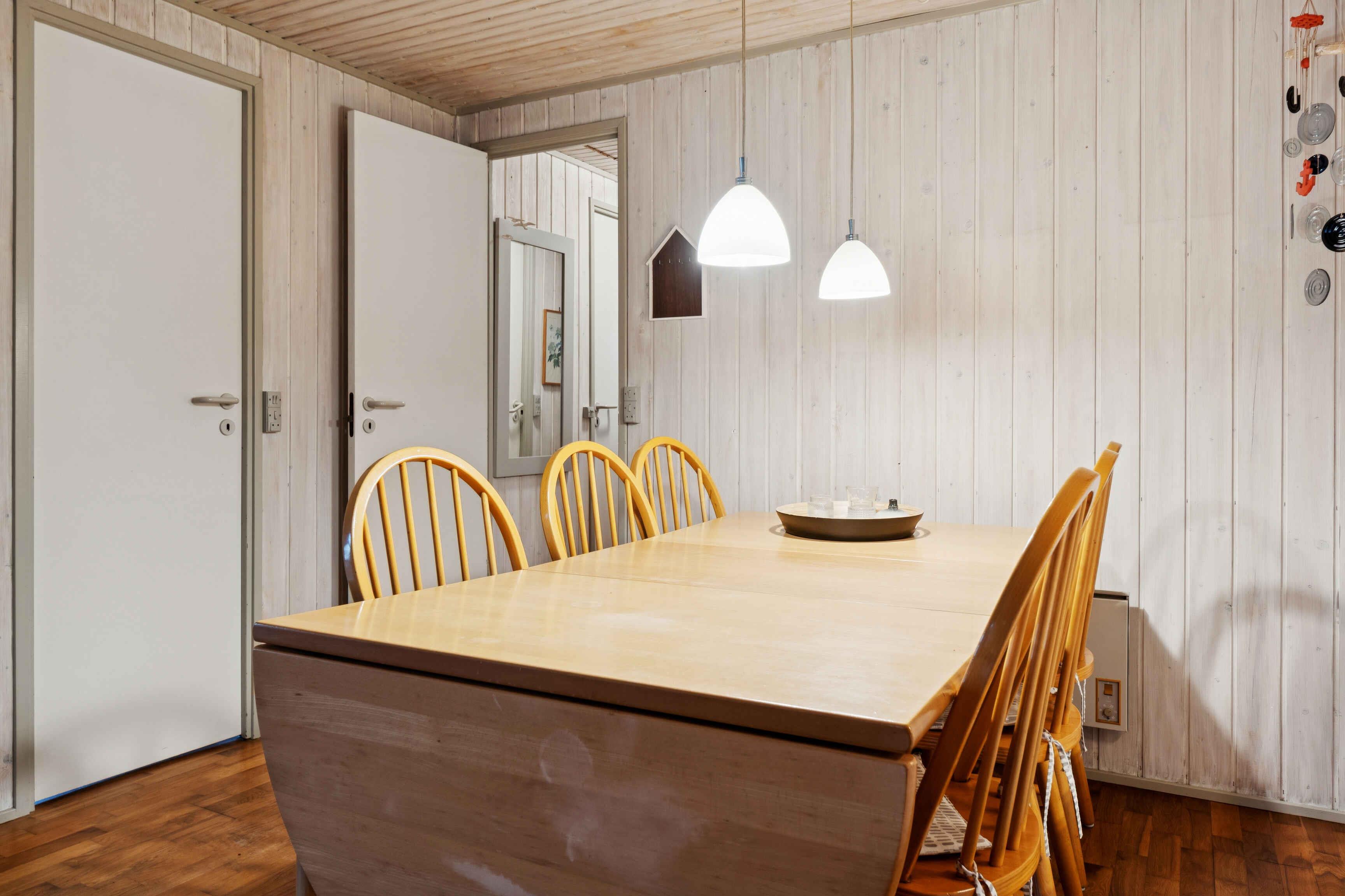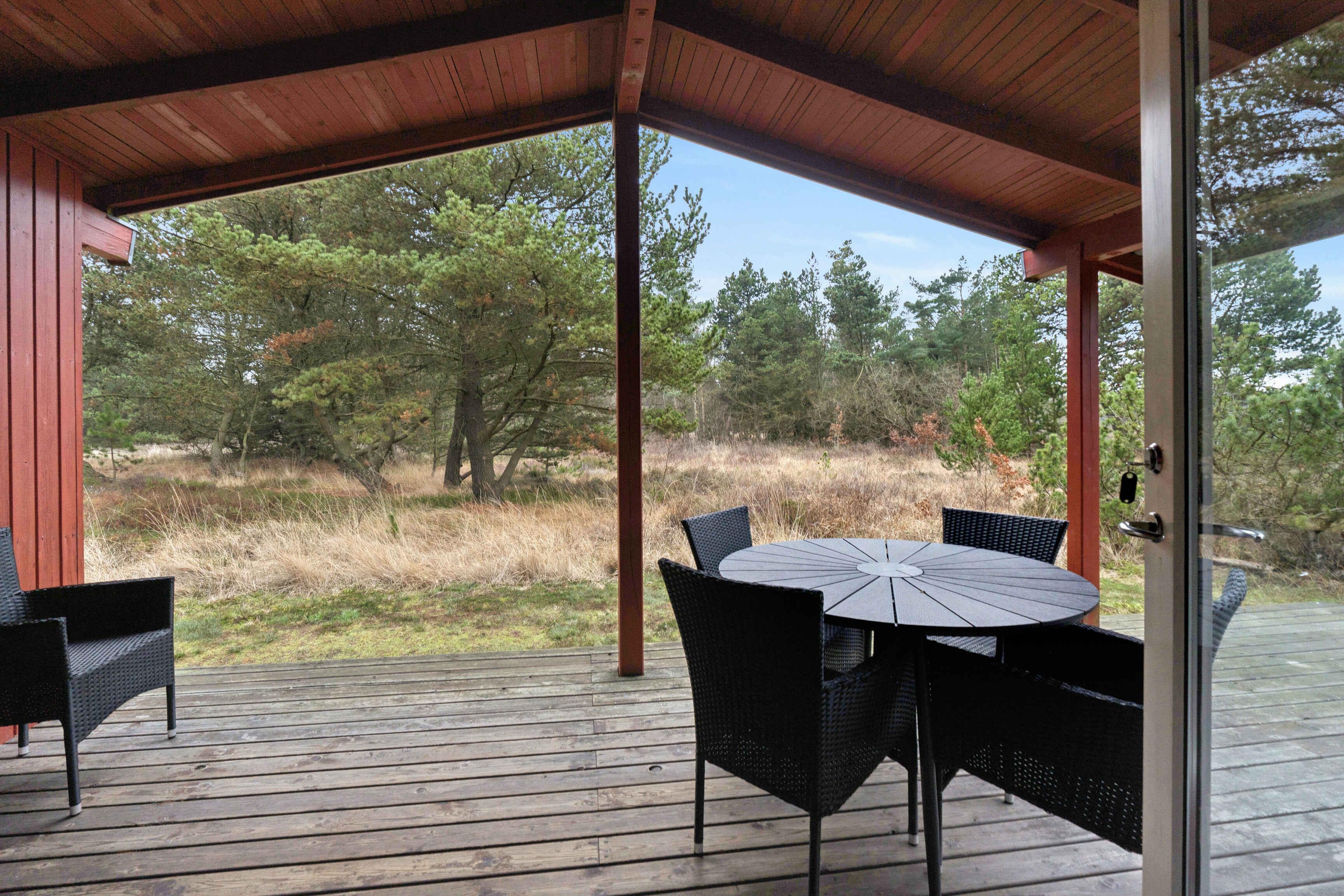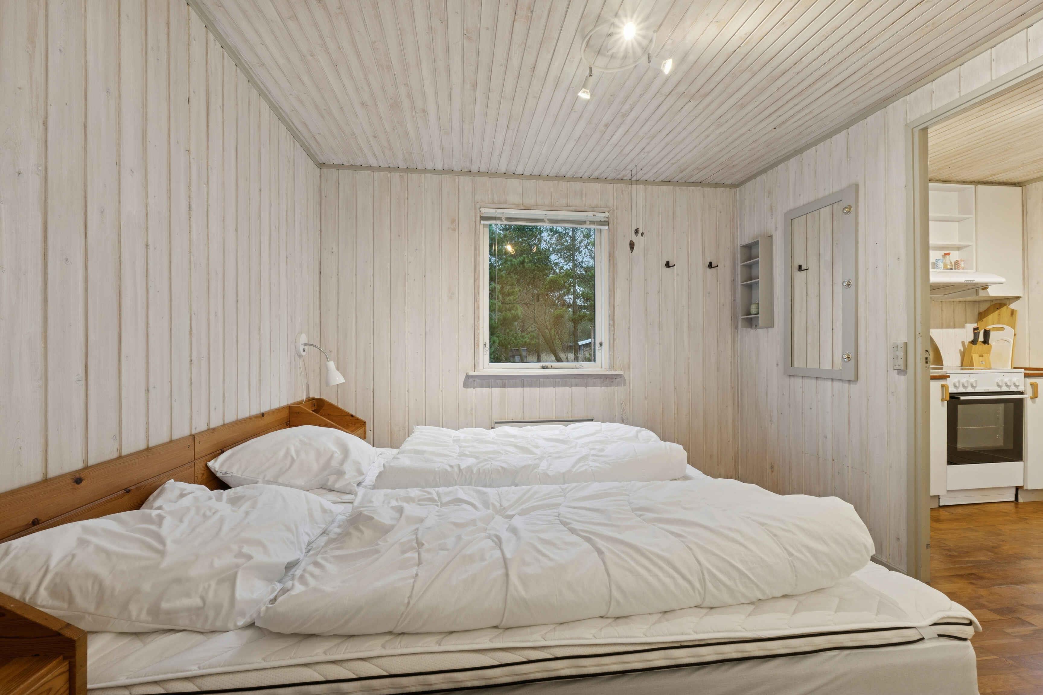 Det 64 m² store sommerhus rummer plads til fem personer og er indrettet til et ophold, hvor ro og nærhed til naturen er i centrum. Den åbne planløsning giver en afslappet atmosfære og gør det let at være samlet, uanset om dagen foregår ude eller inde. Indenfor ligger køkken, spiseplads og stue i ét sammenhængende rum. Her findes en brændeovn, som skaber en behagelig stemning på kølige dage. Huset har tre soveværelser fordelt på et med dobbeltseng, et med enkeltseng og et med køjeseng. Fra stuen er der direkte adgang til en delvist overdækket terrasse, som er lukket og egnet til både måltider og afslapning. Terrassen vender ud mod den store naturgrund, hvor man kan opholde sig ugeneret og være tæt på landskabet. Udenfor er der god plads til at grille, læse en bog eller lade børnene lege i sikkerhed. Den store grund giver mulighed for at opleve dyreliv på nært hold, og der er sol- og lækroge, som kan bruges dagen igennem. Området omkring sommerhuset er særligt attraktivt for gæster, der søger naturoplevelser. Vadehavet ligger i kort afstand og giver mulighed for at opleve tidevandet, vadevandringer og et rigt fugleliv. Nationalpark Vadehavet er på UNESCO’s verdensarvsliste og byder på unikke landskaber, der ændrer sig med årstiderne. Rømø er kendt for sine brede sandstrande, hvor man kan gå, cykle eller strandsejle i særlige områder. Øen har et netværk af stier gennem hede og skov, som gør det oplagt at udforske naturen til fods eller på cykel. Fuglekiggere finder gode forhold både ved kysten og inde i landskabet. Indkøbsmuligheder og lokale tilbud ligger i køreafstand, så daglige behov kan klares uden besvær. Sommerhuset egner sig til både familier og par, der ønsker en base med enkel adgang til natur, udflugter og stille dage i egne rammer. Obs, udlejes ikke til erhversmæssigt brug.