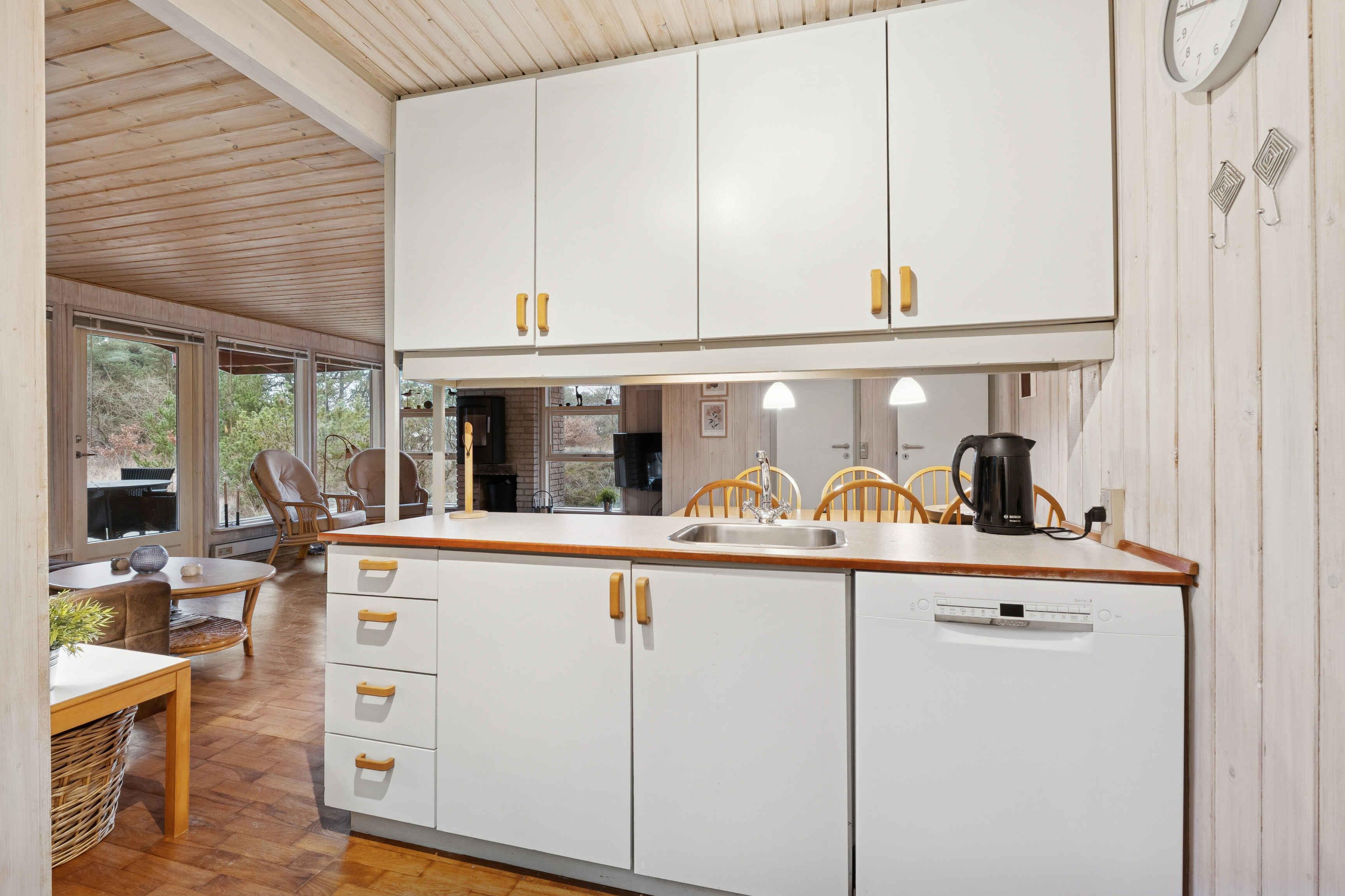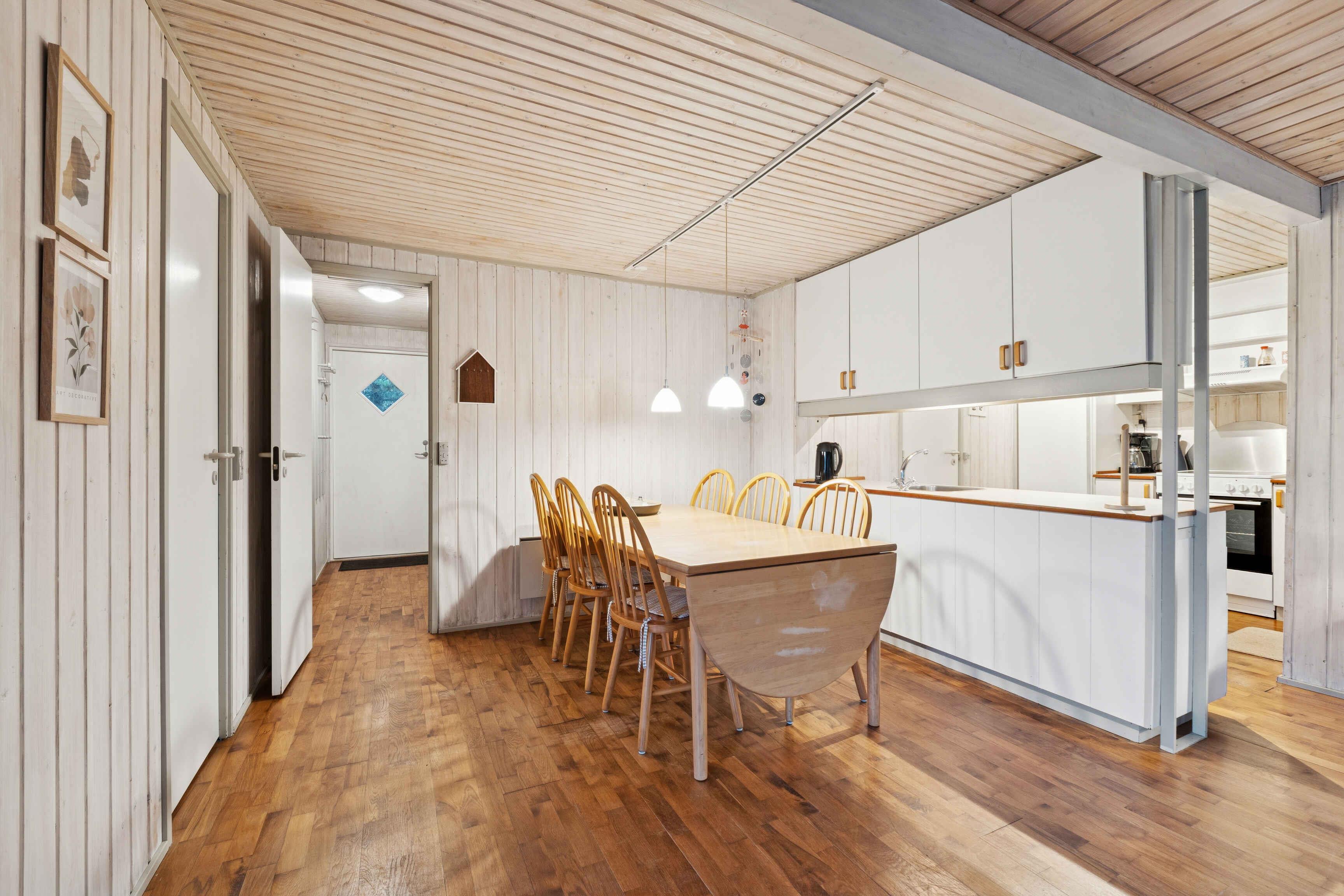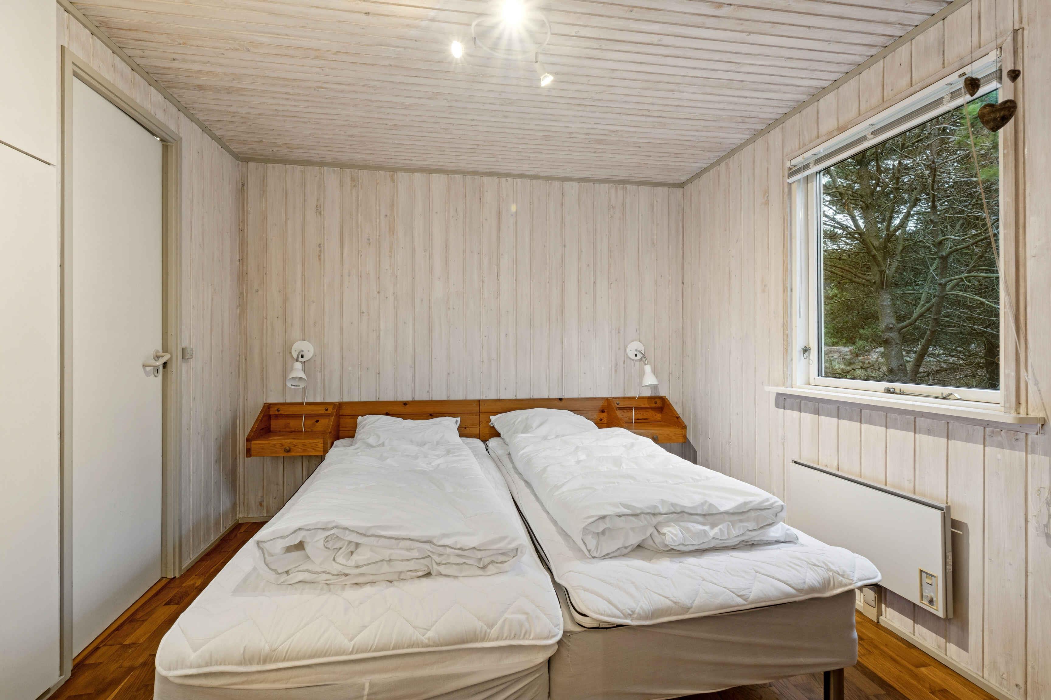 Det 64 m² store sommerhus rummer plads til fem personer og er indrettet til et ophold, hvor ro og nærhed til naturen er i centrum. Den åbne planløsning giver en afslappet atmosfære og gør det let at være samlet, uanset om dagen foregår ude eller inde. Indenfor ligger køkken, spiseplads og stue i ét sammenhængende rum. Her findes en brændeovn, som skaber en behagelig stemning på kølige dage. Huset har tre soveværelser fordelt på et med dobbeltseng, et med enkeltseng og et med køjeseng. Fra stuen er der direkte adgang til en delvist overdækket terrasse, som er lukket og egnet til både måltider og afslapning. Terrassen vender ud mod den store naturgrund, hvor man kan opholde sig ugeneret og være tæt på landskabet. Udenfor er der god plads til at grille, læse en bog eller lade børnene lege i sikkerhed. Den store grund giver mulighed for at opleve dyreliv på nært hold, og der er sol- og lækroge, som kan bruges dagen igennem. Området omkring sommerhuset er særligt attraktivt for gæster, der søger naturoplevelser. Vadehavet ligger i kort afstand og giver mulighed for at opleve tidevandet, vadevandringer og et rigt fugleliv. Nationalpark Vadehavet er på UNESCO’s verdensarvsliste og byder på unikke landskaber, der ændrer sig med årstiderne. Rømø er kendt for sine brede sandstrande, hvor man kan gå, cykle eller strandsejle i særlige områder. Øen har et netværk af stier gennem hede og skov, som gør det oplagt at udforske naturen til fods eller på cykel. Fuglekiggere finder gode forhold både ved kysten og inde i landskabet. Indkøbsmuligheder og lokale tilbud ligger i køreafstand, så daglige behov kan klares uden besvær. Sommerhuset egner sig til både familier og par, der ønsker en base med enkel adgang til natur, udflugter og stille dage i egne rammer. Obs, udlejes ikke til erhversmæssigt brug.