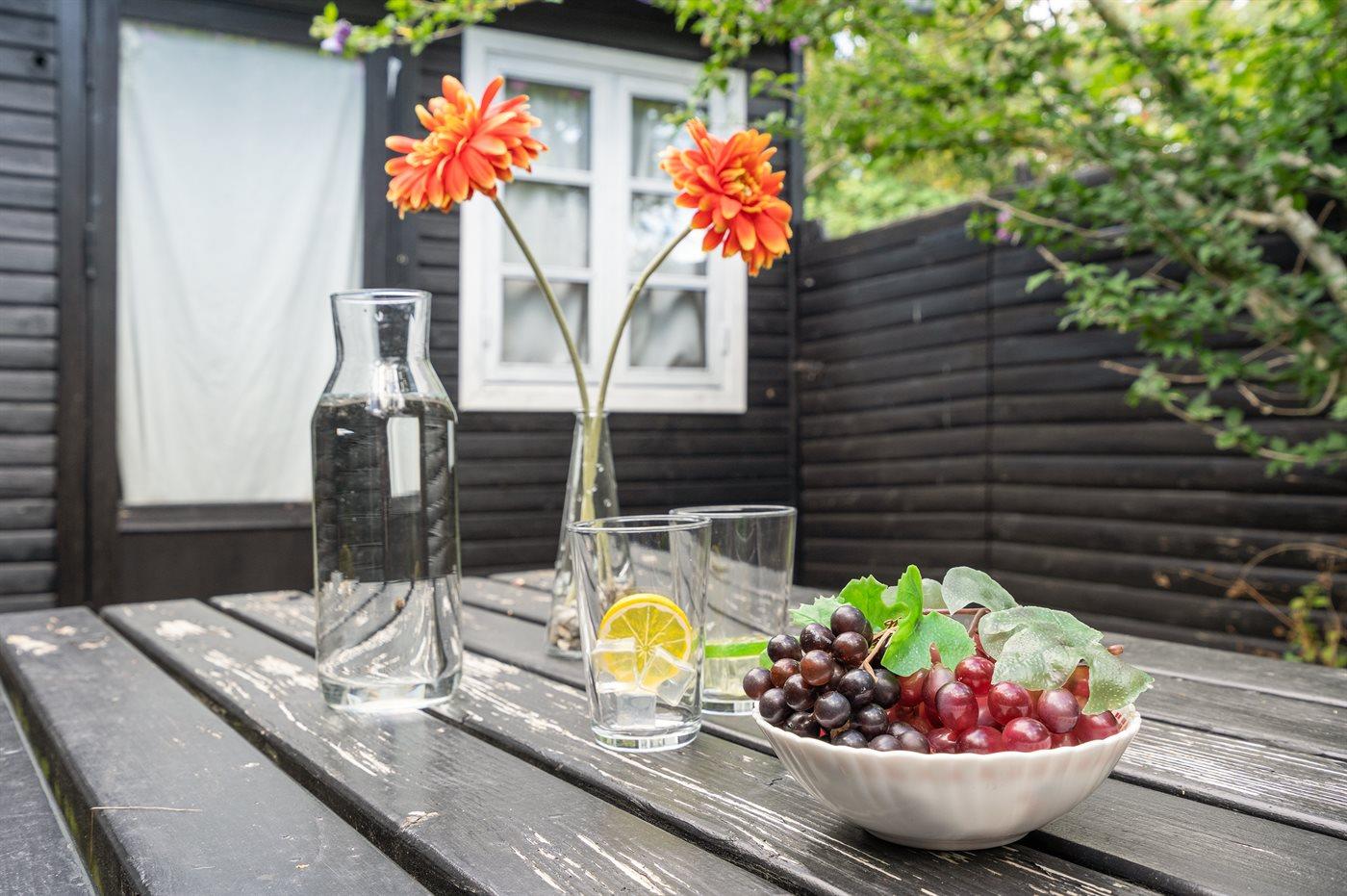 Charmerende, ældre men velholdt sommerhus beliggende tæt ved vandet og med gode udendørs legemuligheder for børn.