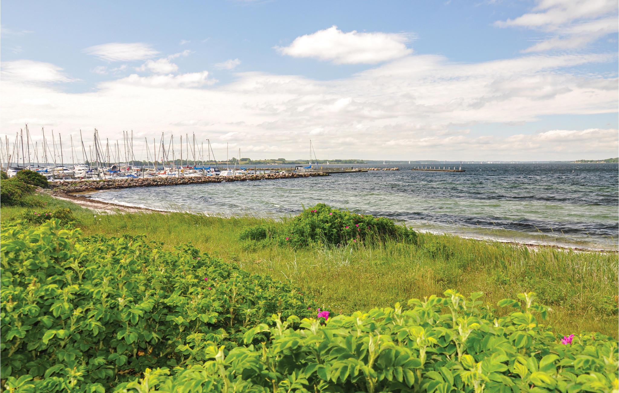 Nyt sommerhus fra 2005 med havudsigt, 15 m til stranden og sauna, beliggende ved marina i Egernsund.