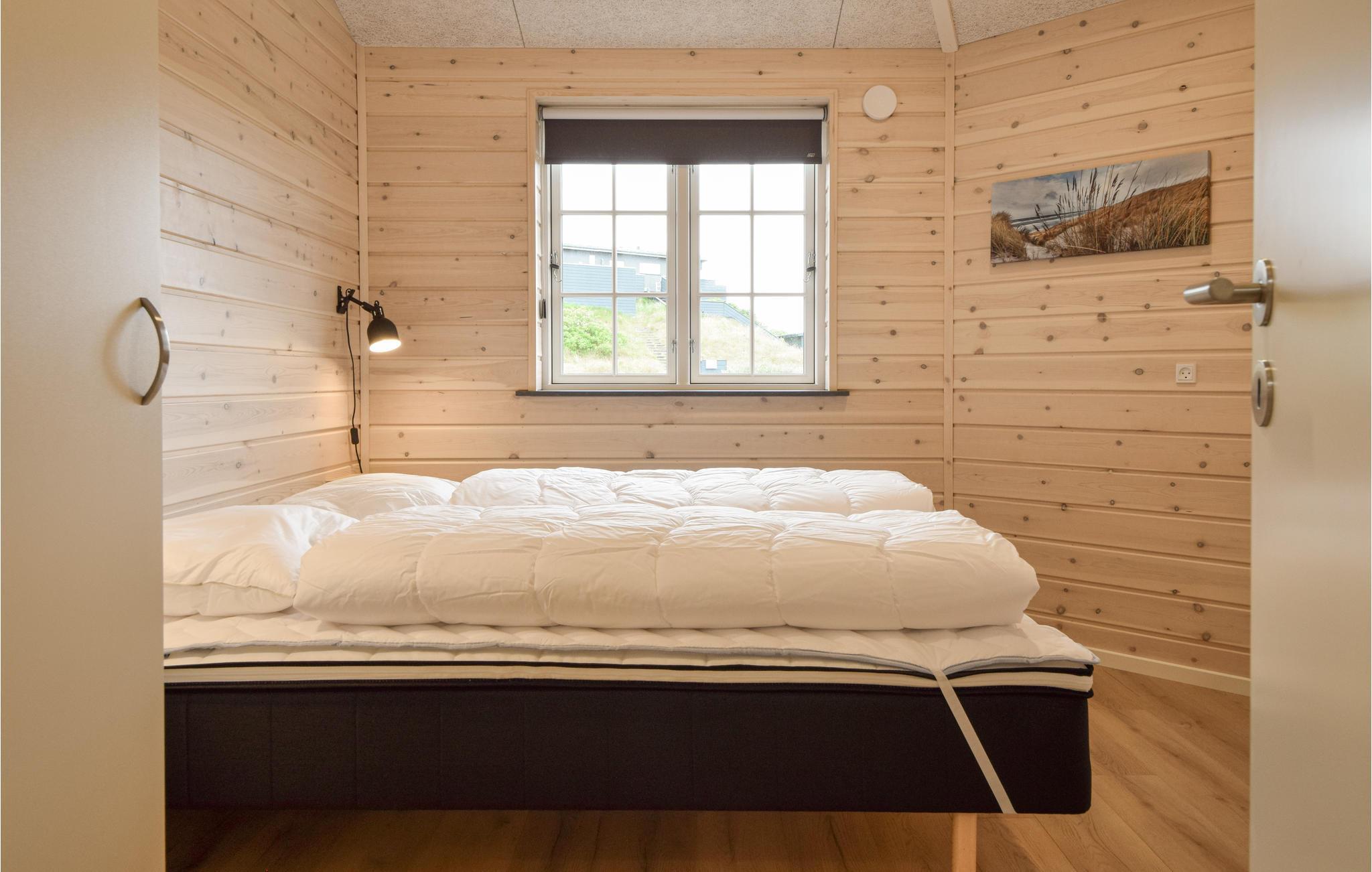 Huset har et meget rummeligt stue/køkkenområde med masser af lys, der strømmer ind gennem de store vinduespartier, samt et godt ovenlys i det spektakulære loft. De 3 flotte soveværelser og alkoven (med forhæng) giver god plads til 8 personer. De 2 dejlige badeværelser har også hver deres charme med skæve vinkler, og fra det ene er der direkte udgang til en udendørs bruser med både varmt og koldt vand, så I efter en tur ved stranden, kan I tage bad udendørs men stadig afskærmet (bruseren er brugbar i sommerhalvåret).