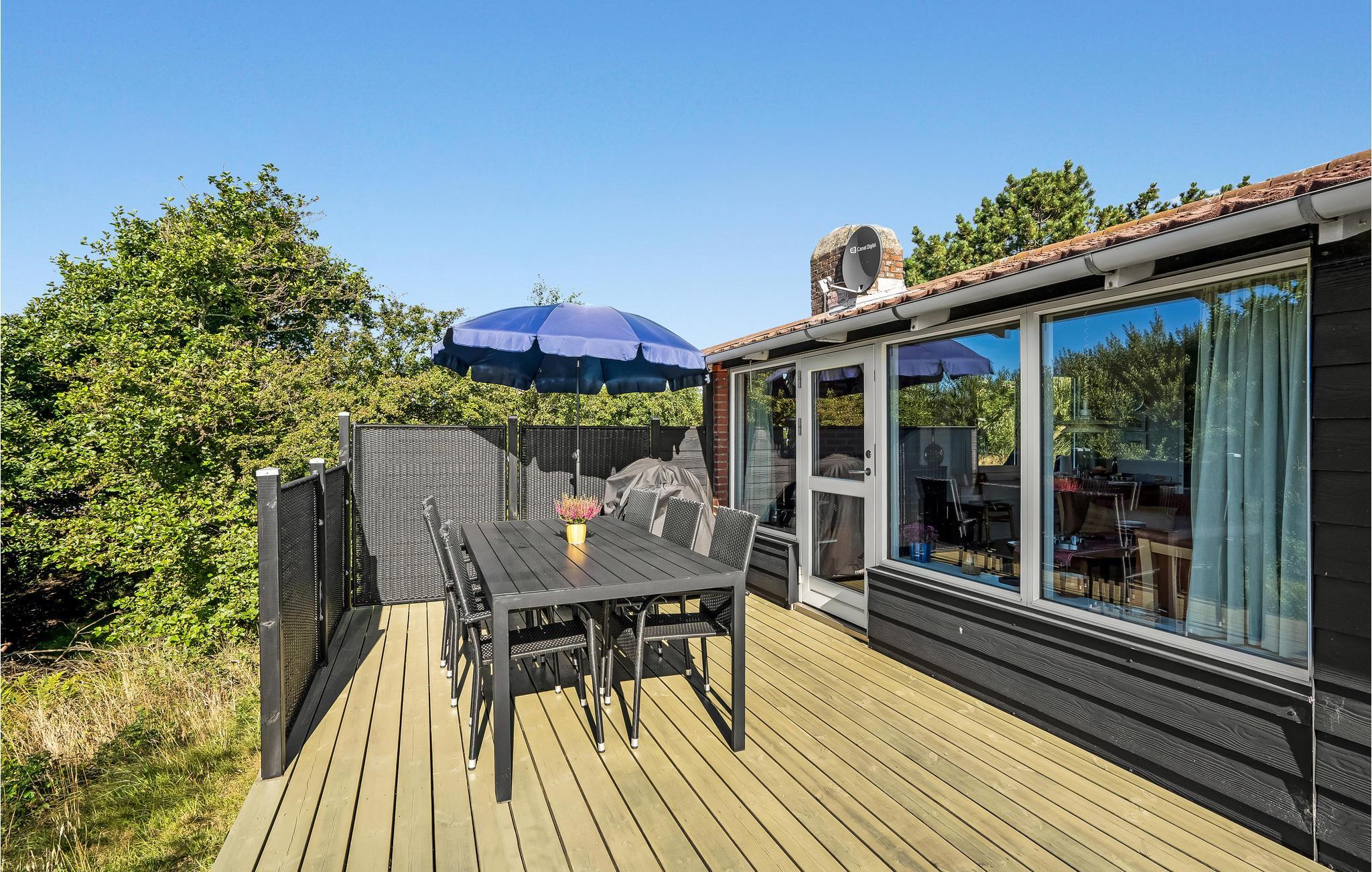 En dejlig stor terrasse giver jer mulighed for at tilbringe masser af tid i haven og nyde solen. Spis feriens måltider udenfor, og nyd morgenmaden her. Smid håndklædet overskulderen, og gå gennem det charmerende sommerhusområde, på få minutter når I den brede sandstrand.