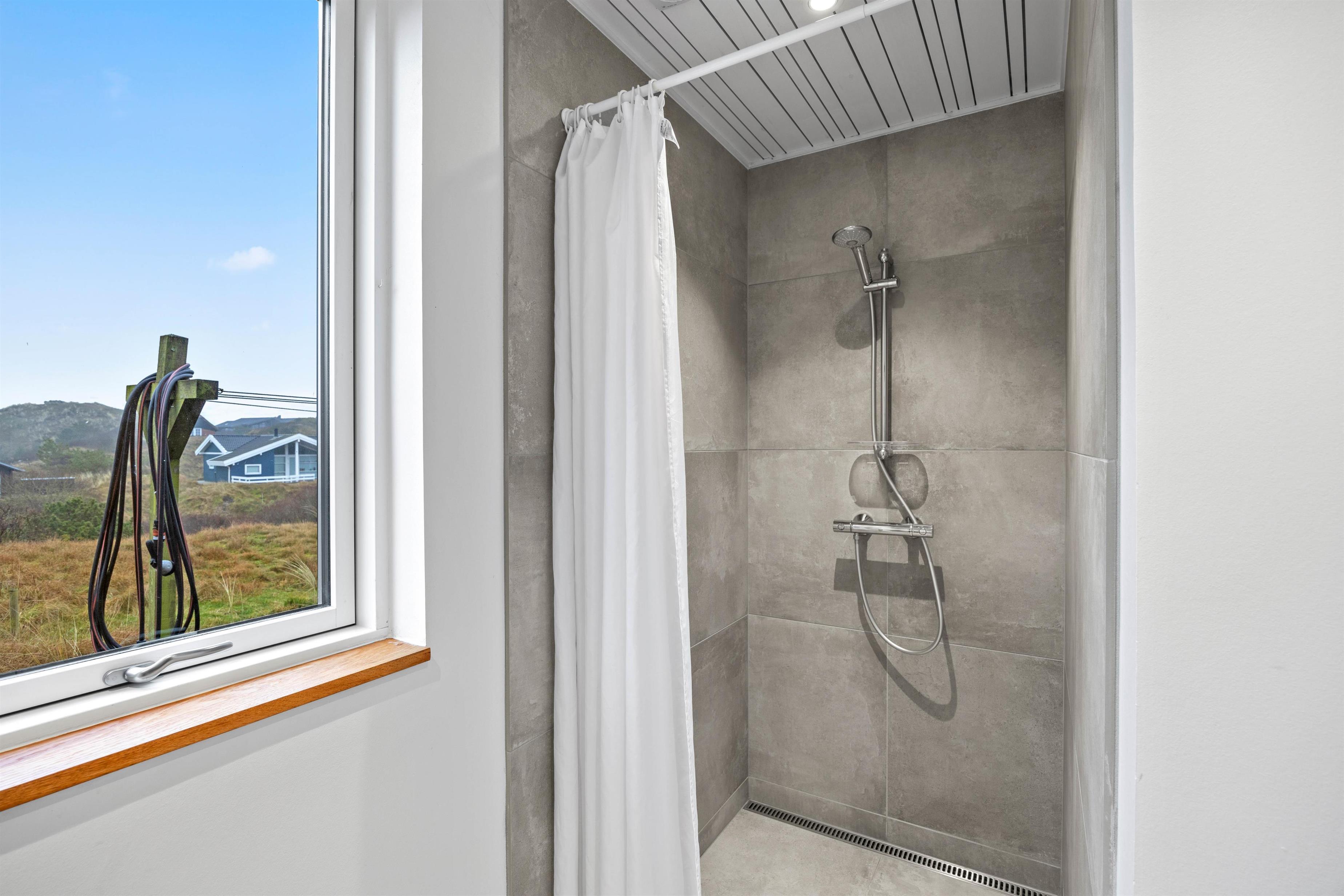 Det veludstyrede køkken indbyder til madlavning og har bl.a. en opvaskemaskine, en køle-/frysekombination og en induktionskogeplade. Badeværelset er moderne og har bruser samt gulvvarme. Derudover råder sommerhuset over en tørretumbler og vaskemaskine, hvilket gør det praktisk og bekvemt.
