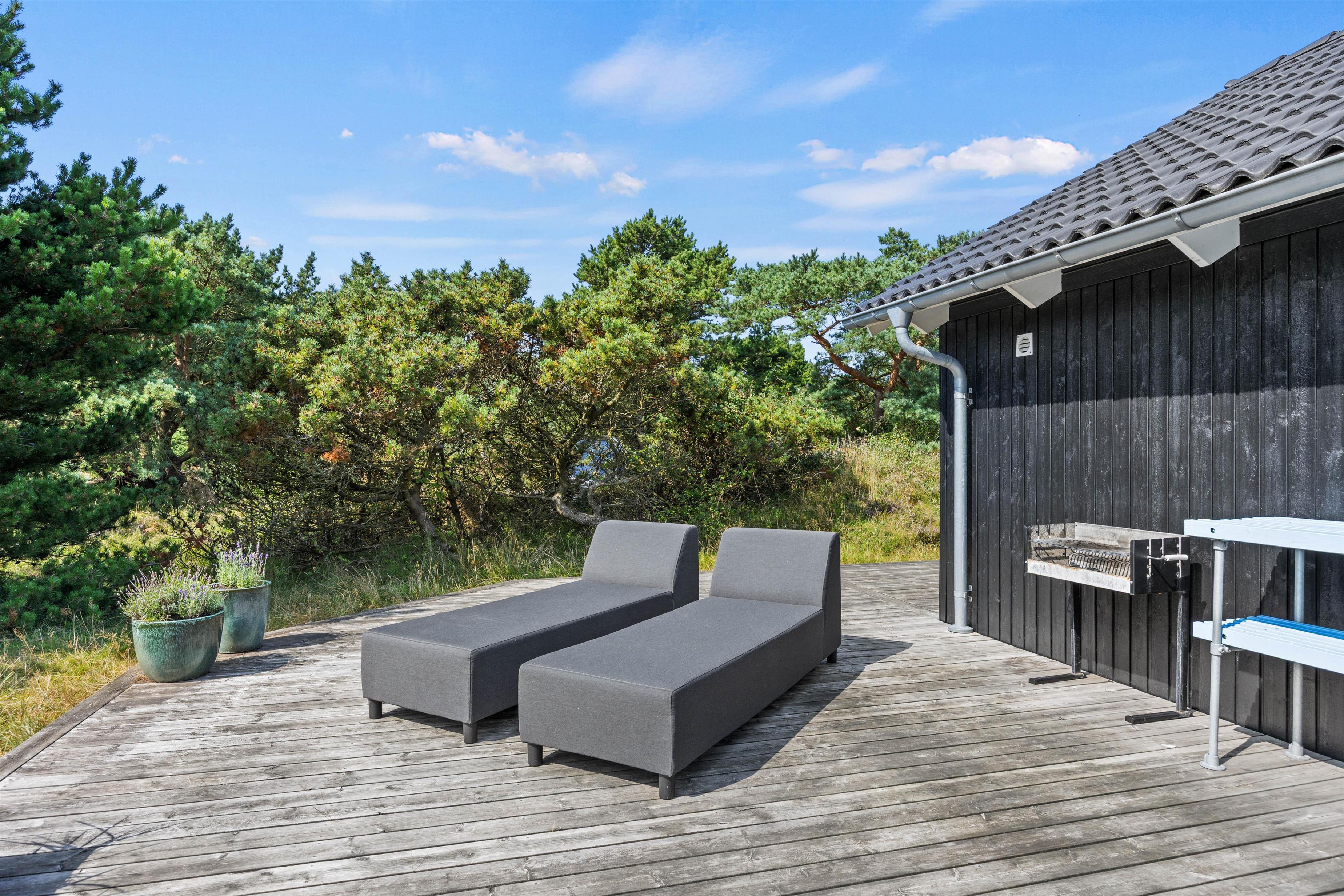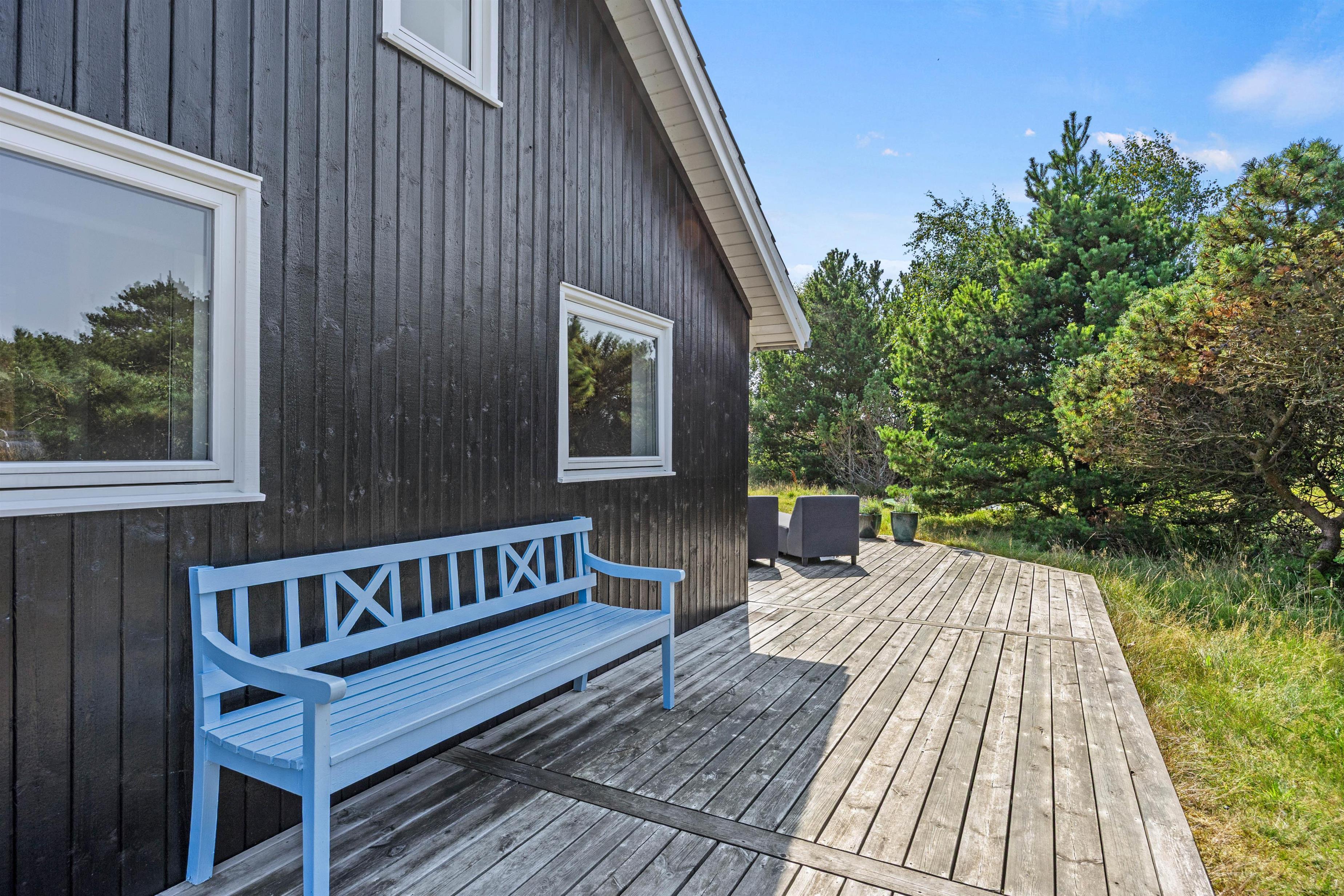 Udenfor venter jer overraskelser – mens børnene leger på trampolinen eller gyngen, kan I nyde den friske vesterhavsluft på terrassen. På varme dage sørger en udendørs bruser for afkøling. Feriehuset er hundevenligt, så også jeres firbenede venner kan nyde naturen omkring ejendommen. Med en kort gåtur når I den brede sandstrand, der indbyder til lange timer ved Vesterhavet.
