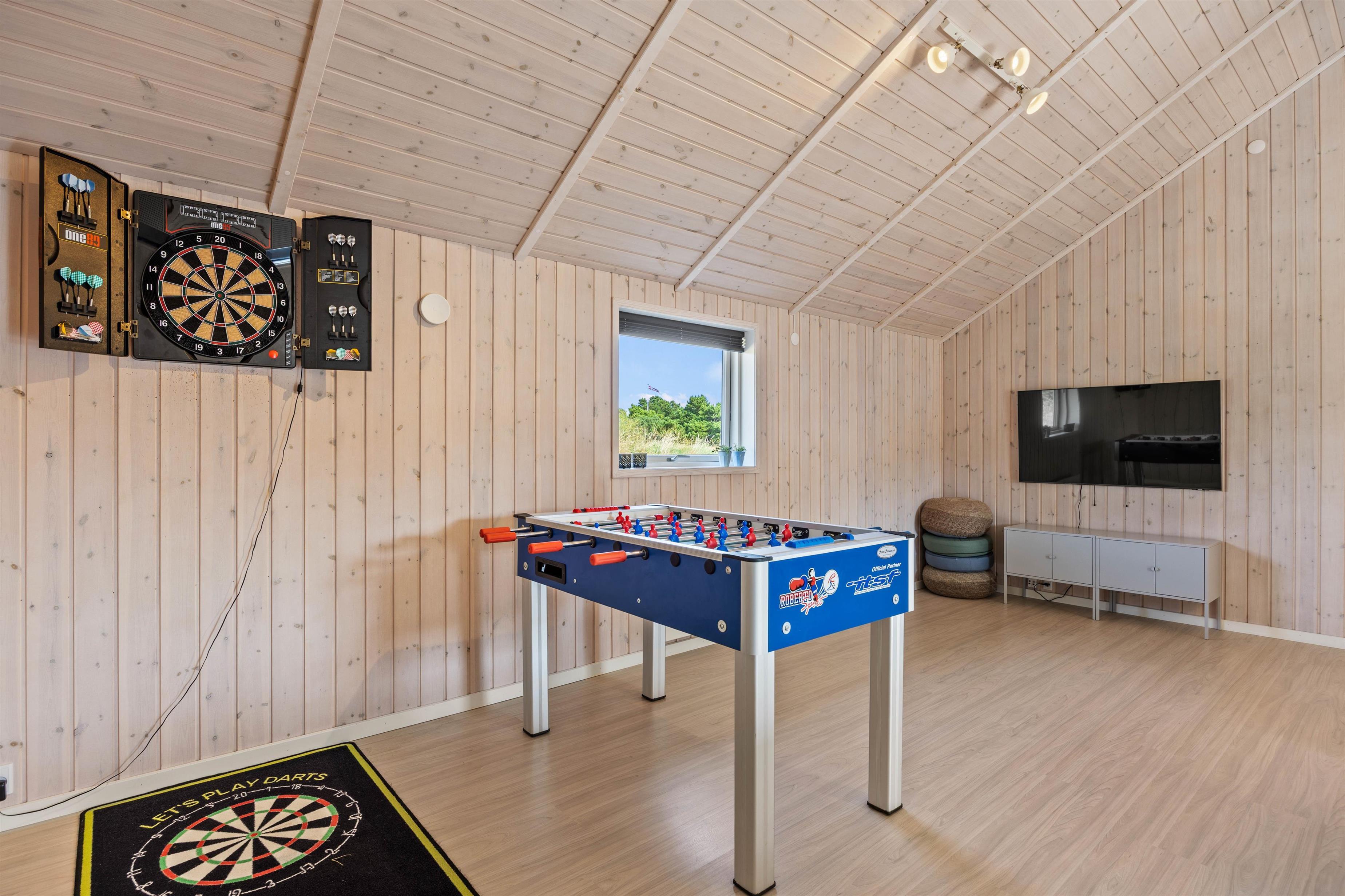 Feriehuset har 4 soveværelser med i alt 8 enkeltsenge, så alle har sin egen seng. 2 badeværelser – begge med gulvvarme – sikrer, at I har masser af plads til jeres daglige velvære. For afslappende stunder er der et spabad til rådighed. Køkkenet indeholder alt, hvad I behøver for at forkæle hinanden med lækre hjemmelavede måltider, herunder induktionskomfur og opvaskemaskine. Der er også vaskemaskine og tørretumbler i feriehuset, så I ikke behøver at bekymre jer om hverdagen. Som et ekstra plus har feriehuset et aktivitetsrum med billard, bordtennis og andre muligheder for spændende timer med hele familien.