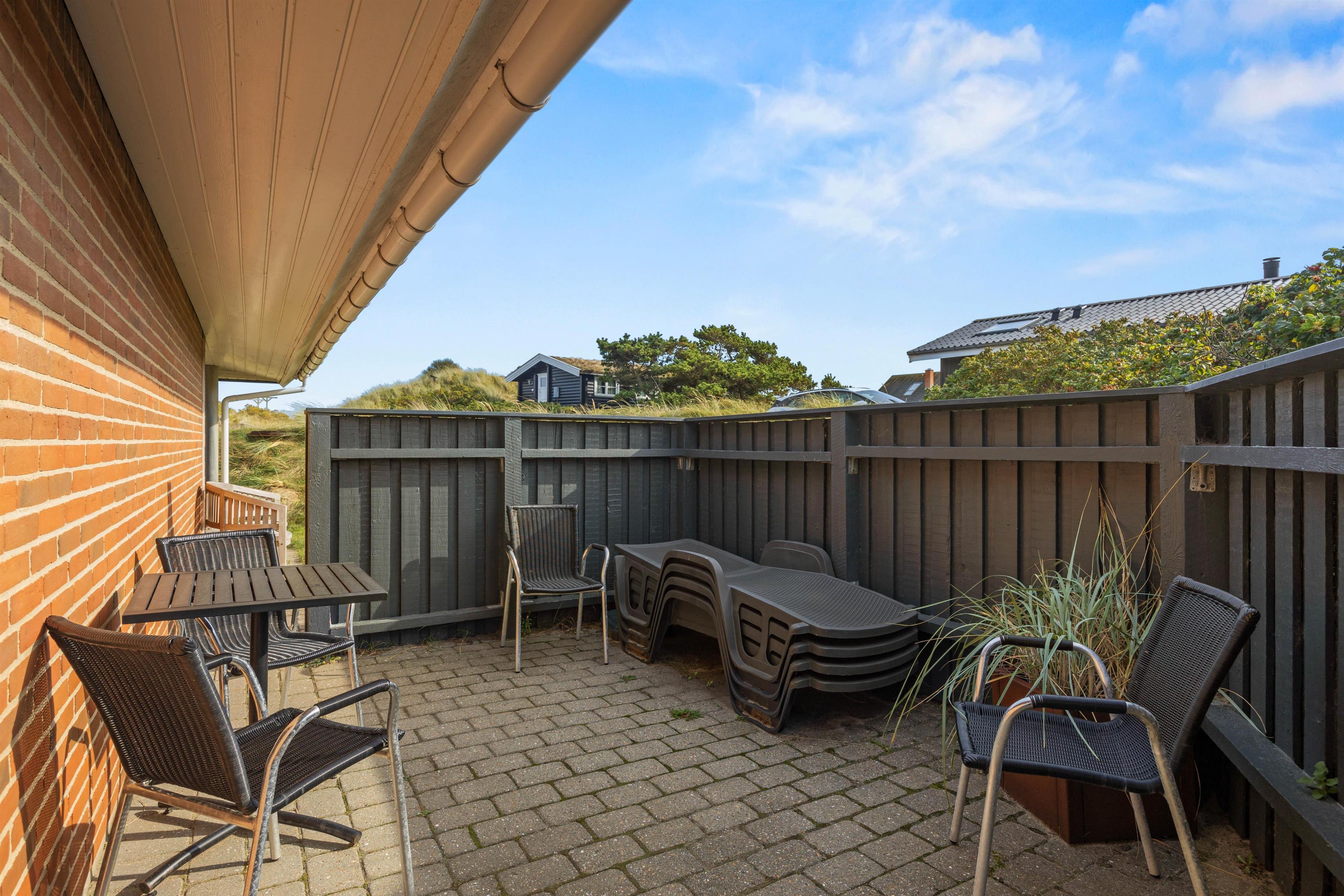 I hver ende af alrummet har I en hyggelig altan, I kan gå ud på. Den ene altan vender mod øst og er derfor det oplagte sted at nyde dagens første kop kaffe, mens den anden altan vender mod vest, hvor I kan nyde dagens sidste solstråler, og den fantastiske udsigt til det omkringliggende klitområde.