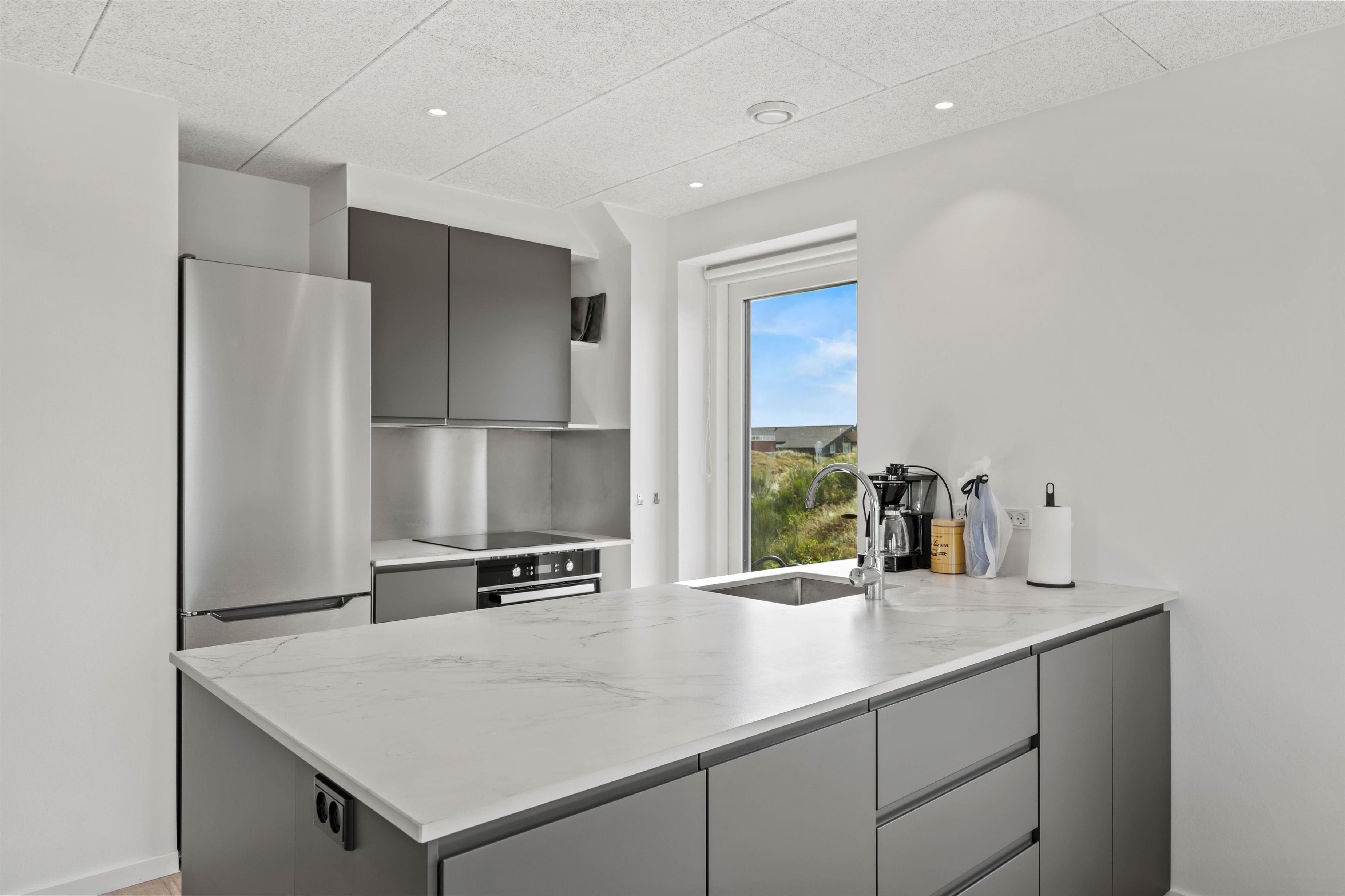 I den store opholds- og spisestue har I masser af plads til at være sammen og nyde ferielivet. Indretningen er lys, moderne og funktionel, så I straks føler jer hjemme. Da der både i stueetagen og på første sal er en opholdsstue, kan hver person finde sit helt eget yndlingshjørne – hvad enten I samles til hyggelige stunder eller trækker jer tilbage for et roligt øjeblik alene.