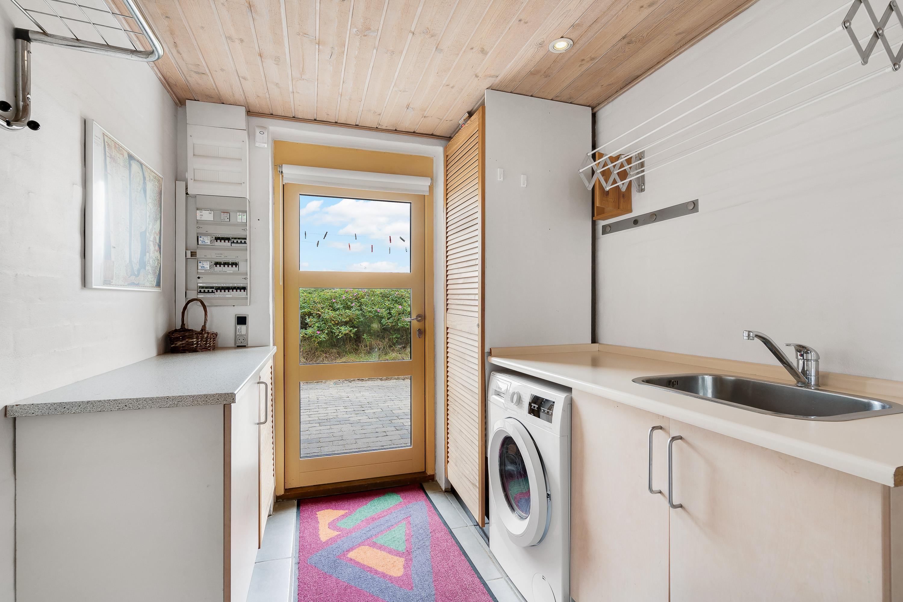 Så snart I parkerer bilen ved feriehuset vil I blive mødt af den friske, salte havluft – feriehuset på Havstien 14 ligger nemlig blot 50 meter fra Rindby Strand. Efter I har besteget klitten, står I med fødderne i det fine sand og kan nyde den spektakulære udsigt udover Vesterhavet. Efter en tur på stranden, kan I skylle jer af under udebruseren. Denne kan benyttes fra april til november.