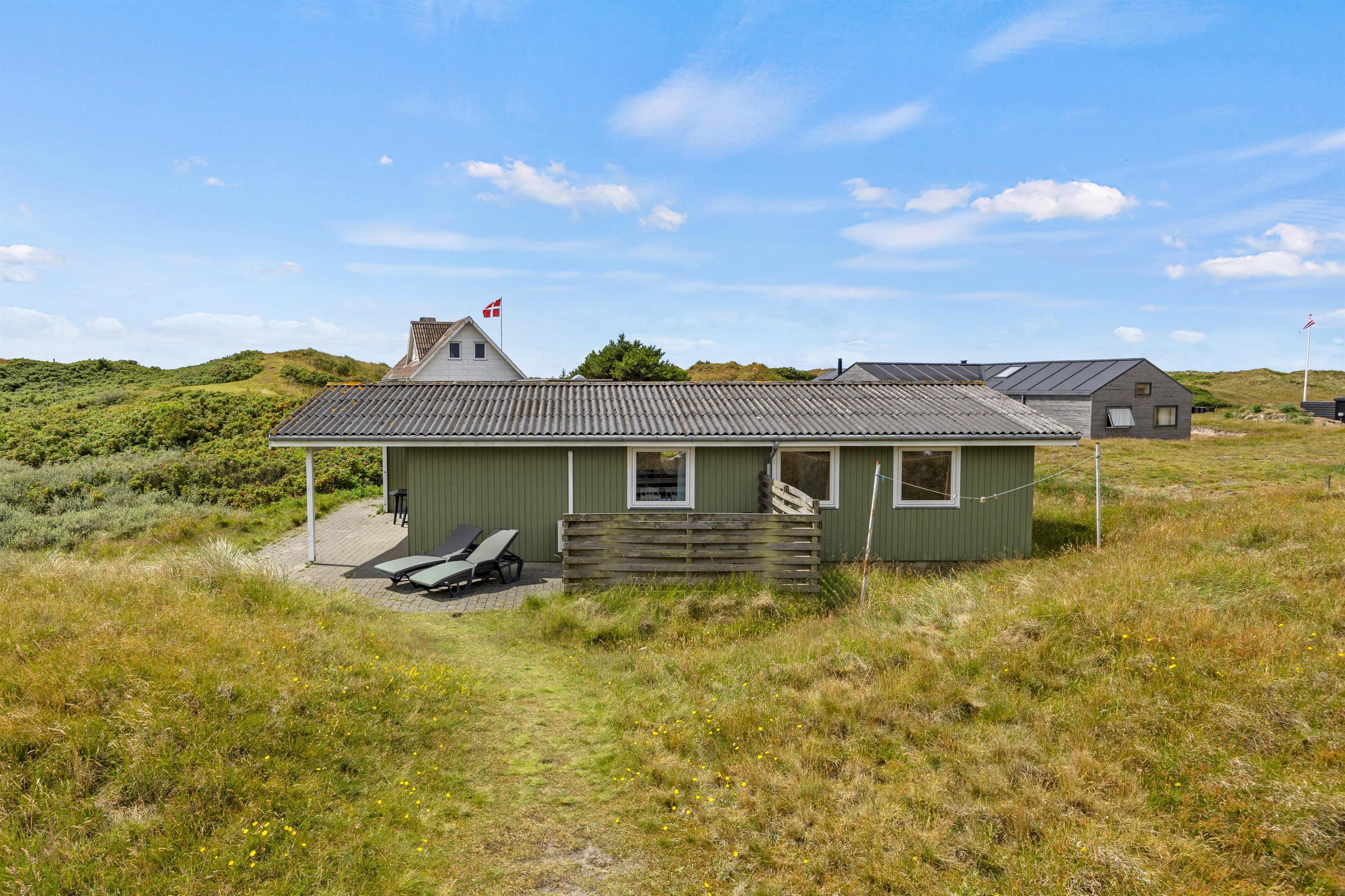 Feriehuset er beliggende på en smuk kuperet naturgrund, hvor marehalmen vifter smukt i vinden. Solskinstimerne kan I nyde på fliseterrassen, som kan tilgås direkte fra stuen. Havemøbler, liggestole samt en grill kan findes her – nyd aftensmaden i det fri med et koldt glas rosé efterfulgt af en smuk aftentur ved vandet.