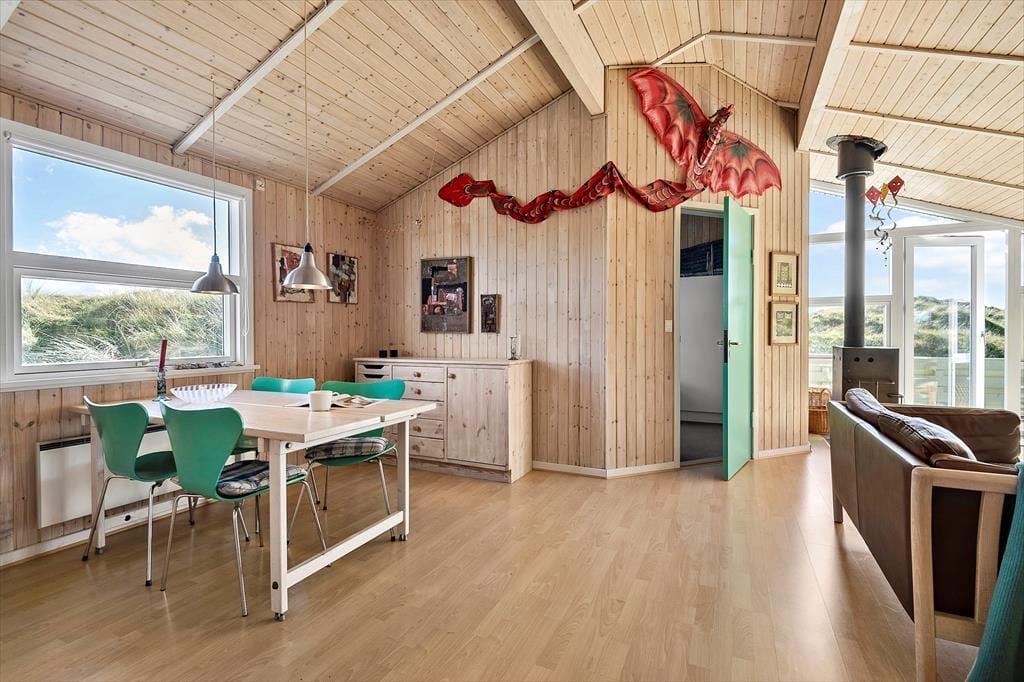 På en fredelig plet i Rindby ligger dette indbydende sommerhus, som er oplagt til en ferie fyldt med ro, naturoplevelser og masser af afslapning. Fra den dejlige terrasse kan du læne dig tilbage og lade øjnene glide ud over det smukke klitlandskab – og når du længes efter havets brusen, er der kun en kort gåtur til stranden.